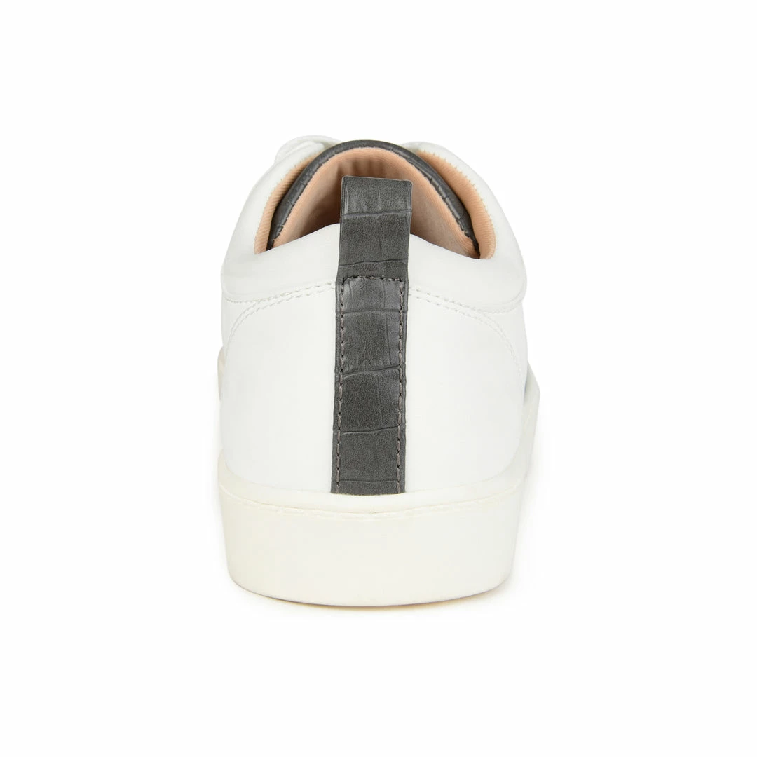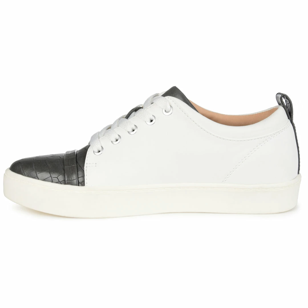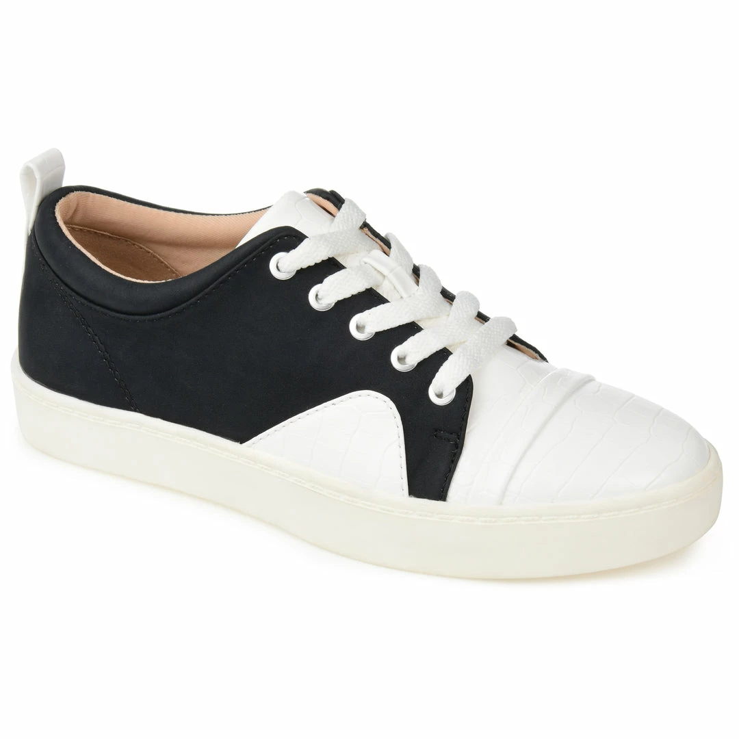 A textured two-tone design lends a contemporary look to this timeless sneaker. The Kyndra by Journee Collection is shaped with top-of-the-line vegan leather uppers fastened by a lace-up closure. This ultra-soft style rests on an 8 mm Tru Comfort Foamโข footbed that provides out of the box comfort. Heel Height – 1-inch Heel Type – Sole Platform Height – 1-inch Shoe Width – Medium Closure Type – Lace-up Toe Style – Almond Lining – Fabric Upper Material – Vegan Leather Outersole Material – Rubber Footbed – 8 MM Tru Comfort Foamโข