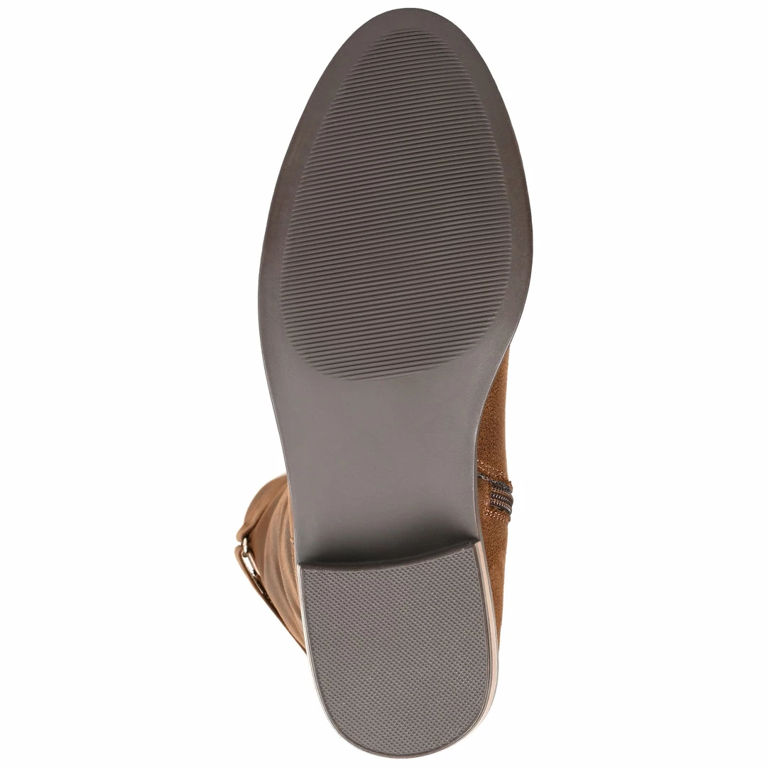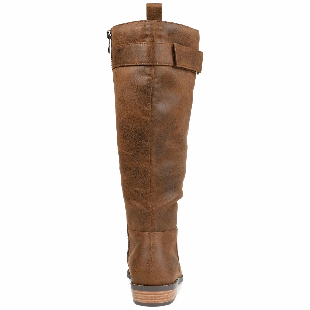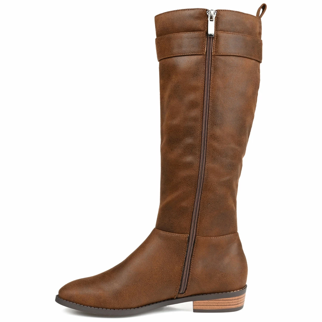 Freshen up your boot collection with the Lelanni by Journee Collection. This mix-and-matchable almond-toe boot features soft vegan leather and an inside zipper for ease of access. A low-block heel paired with a 4 mm Tru Comfort Foam™ insole offers the perfect amount of cushion to your step, and a strap detail tops the look. Heel Height – 1 1/2-inch Heel Type – Stacked Platform Height – Flat-inch Shaft Height – 14 inches Calf Circumference – 15 inches Top Circumference – 15 inches Shoe Width – Medium Closure Type – Inside Zip Toe Style – Almond Lining – Fabric Upper Material – Vegan Leather Outersole Material – Man-made Footbed – 4 MM Tru Comfort Foam™