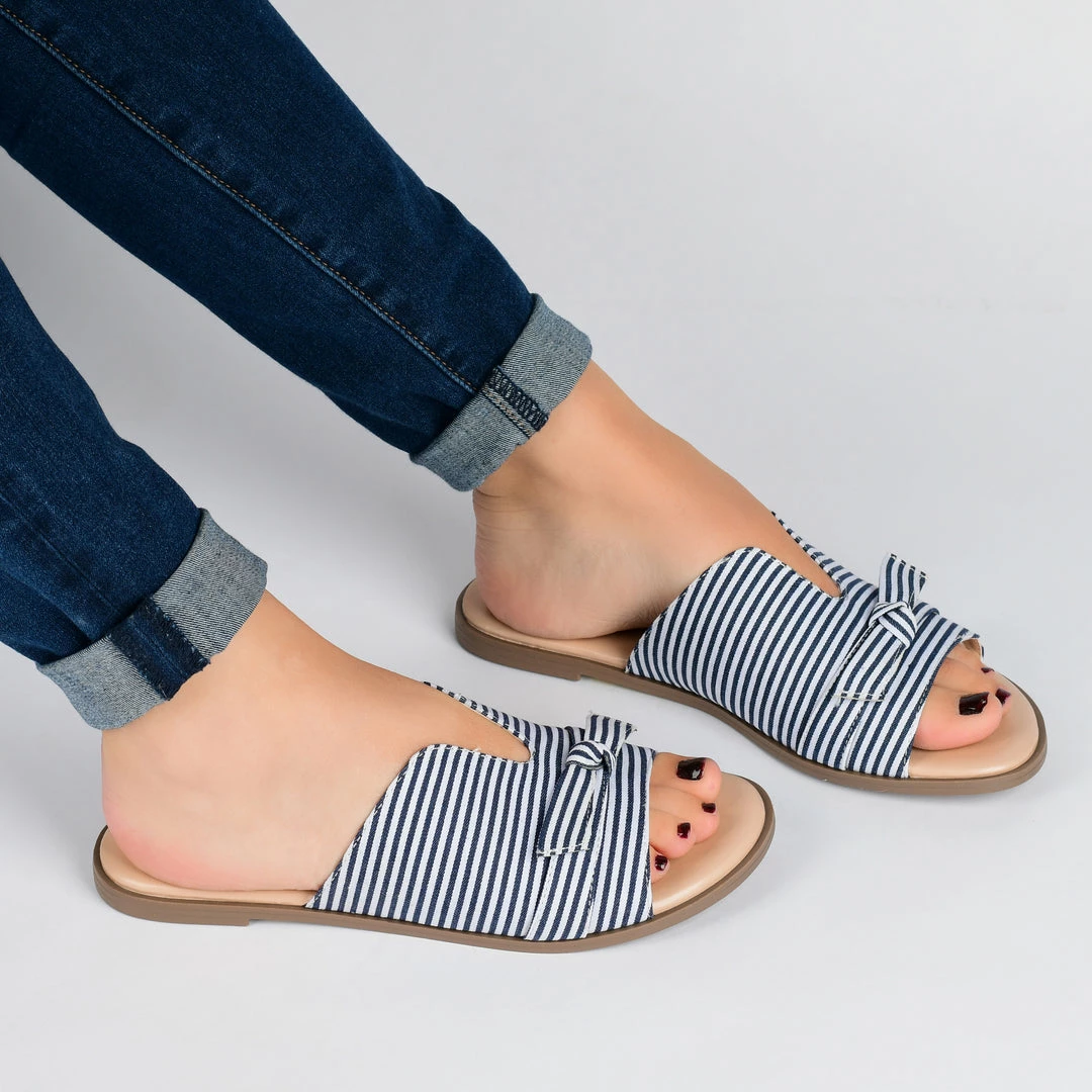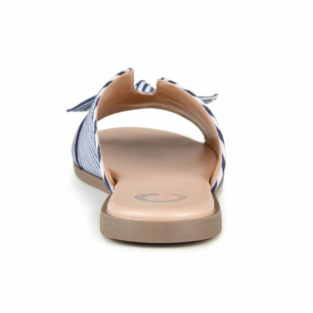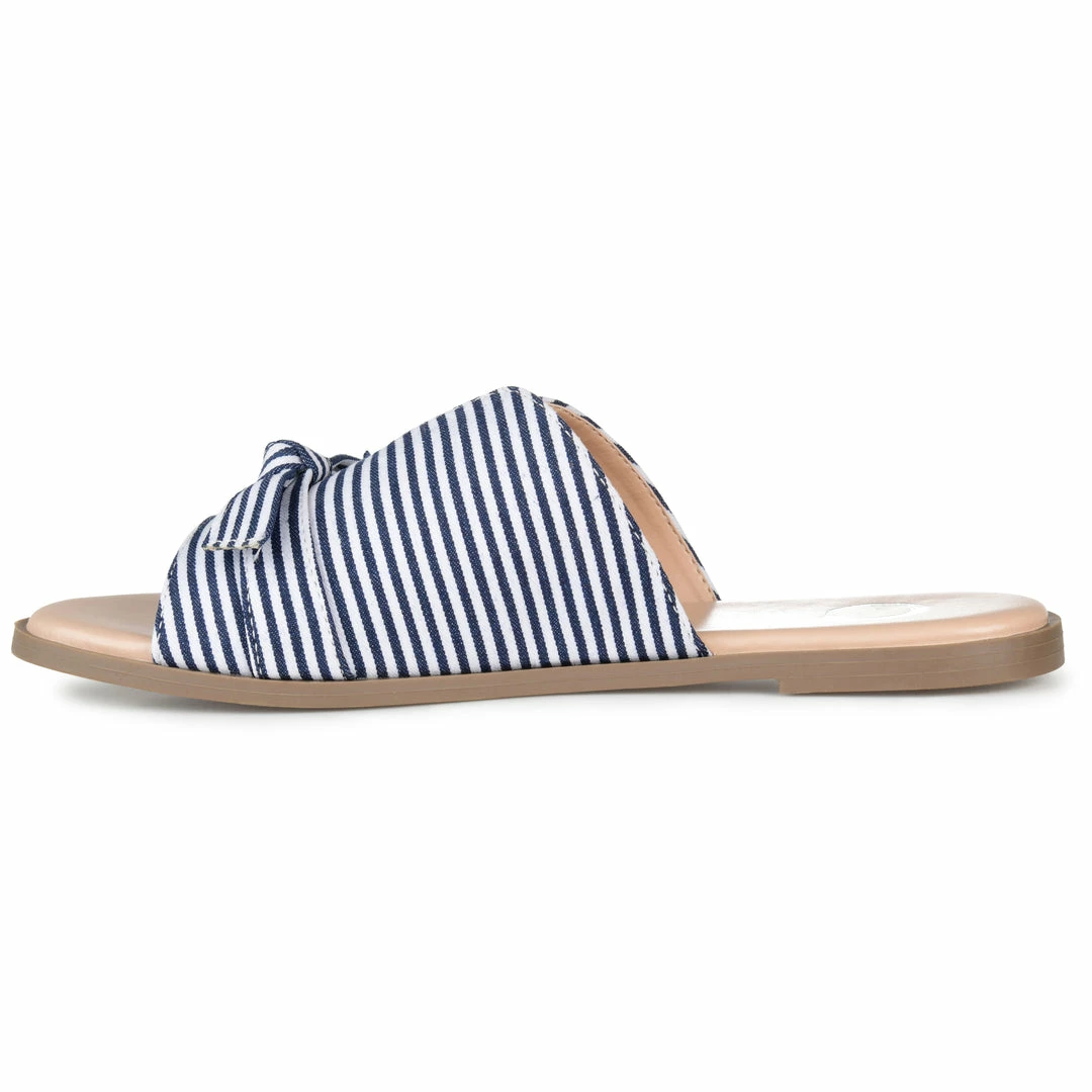 Slip-on this simply sweet sandal and add a bit of print to your look. The Lillian slide by Journee Collection features our signature 4 mm Tru Comfort Foamβ’ insole for a foot-hugging fit. Printed fabric uppers topped with a knotted bow perfects the design. Heel Height – 1/2-inch Heel Type – Sole Platform Height – Flat-inch Shoe Width – Medium Closure Type – Slip-on Toe Style – Open Lining – Faux Leather Upper Material – Fabric Outersole Material – Man-made Footbed – 4 MM Tru Comfort Foamβ’