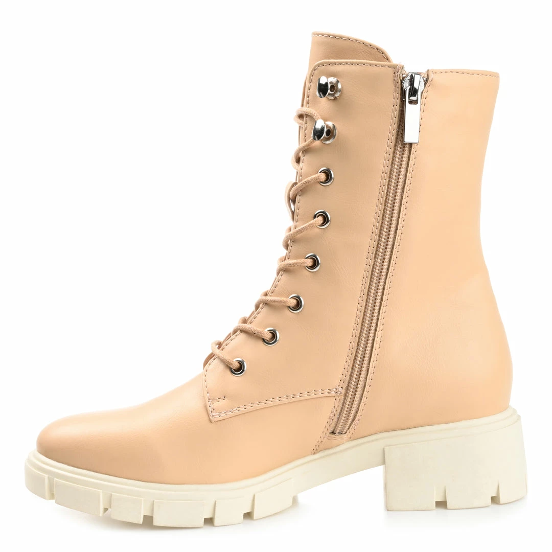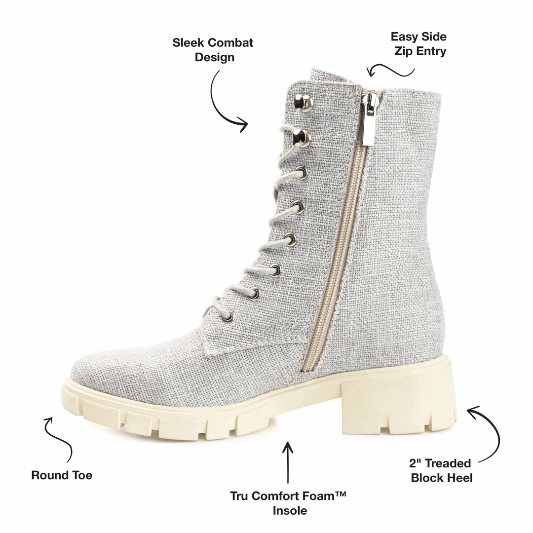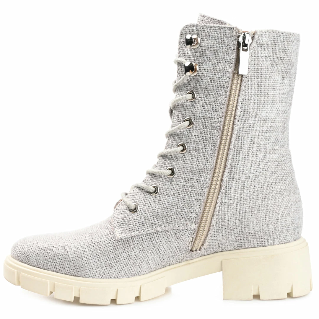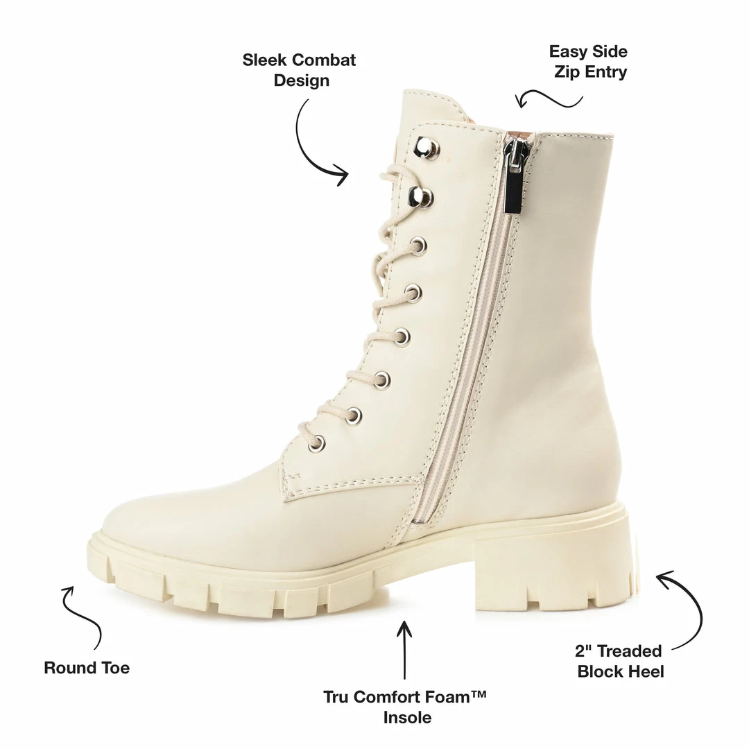 A true ride-or-die companion for all your upcoming plans, the Madelynn bootie by Journee Collection. With a 4 mm Tru Comfort Foamβ’ insole and soft man-made uppers, these high-top booties fit like a dream. A lug-sole and block heel adds the perfect lift and a combat-style lace-up detail with an inside zipper offers easy entry. Heel Height – 2-inch Heel Type – Block Heel Platform Height – 1-inch Shaft Height – 6 1/2 inches Top Circumference – 10 inches Shoe Width – Medium Closure Type – Lace-up Toe Style – Round Lining – Fabric Upper Material – Man-made Outersole Material – Man-made Footbed – 4 MM Tru Comfort Foamβ’