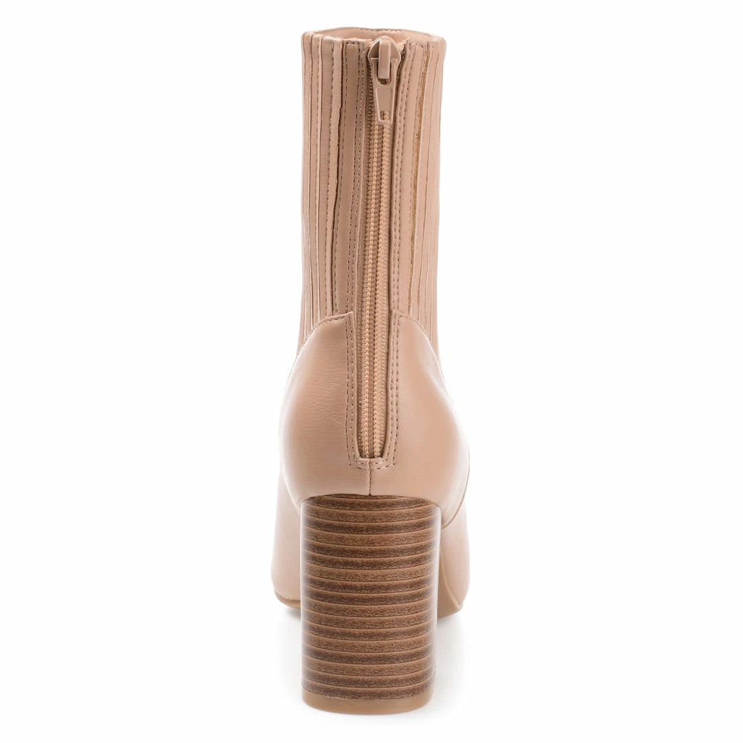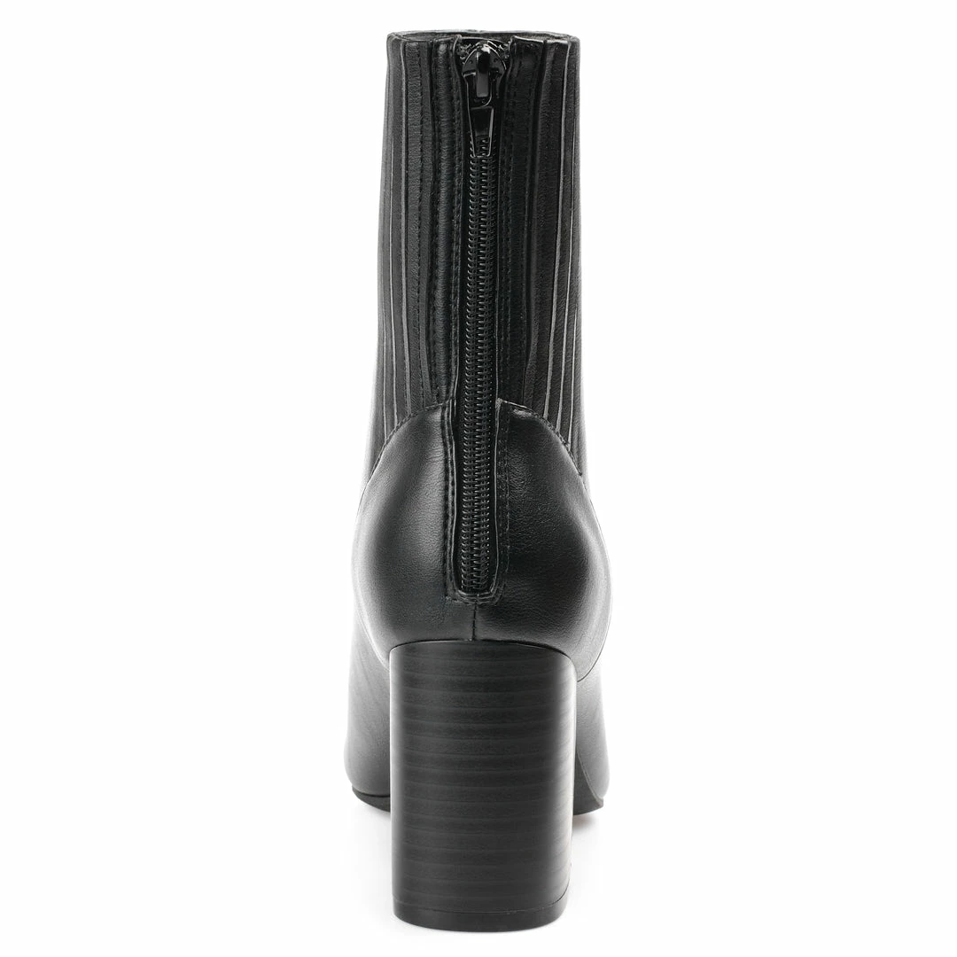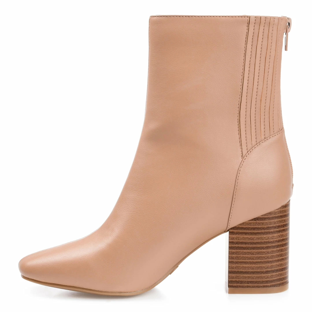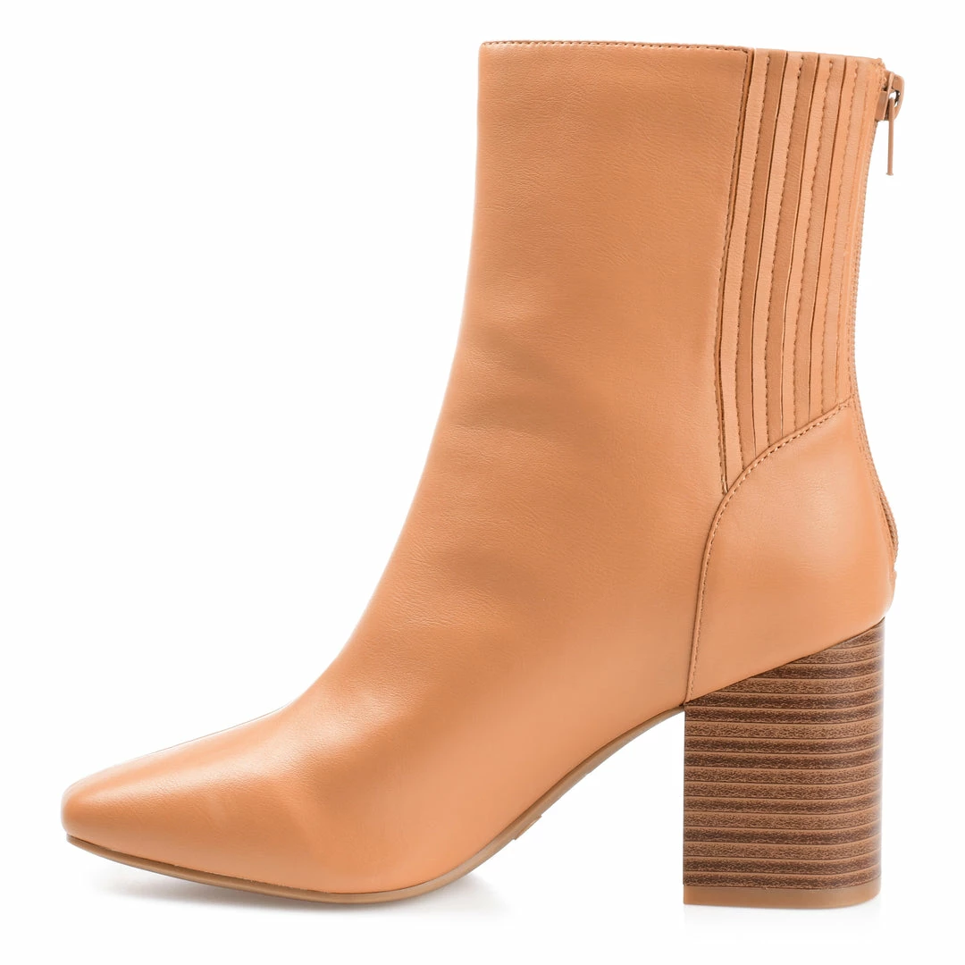 Effortlessly cool details define the Maize bootie by Journee Collection. A seam at the center and square-toe add a chic touch to this vegan leather silhouette. With a 4 mm Tru Comfort Foamβ’ insole and a block heel, this look is oh-so-walkable. Heel Height – 3-inch Heel Type – Stacked Platform Height – Flat-inch Shaft Height – 6 inches Top Circumference – 10 1/2 inches Shoe Width – Medium Closure Type – Back Heel Zip Toe Style – Square Lining – Fabric Upper Material – Vegan Leather Outersole Material – Man-made Footbed – 4 MM Tru Comfort Foamβ’