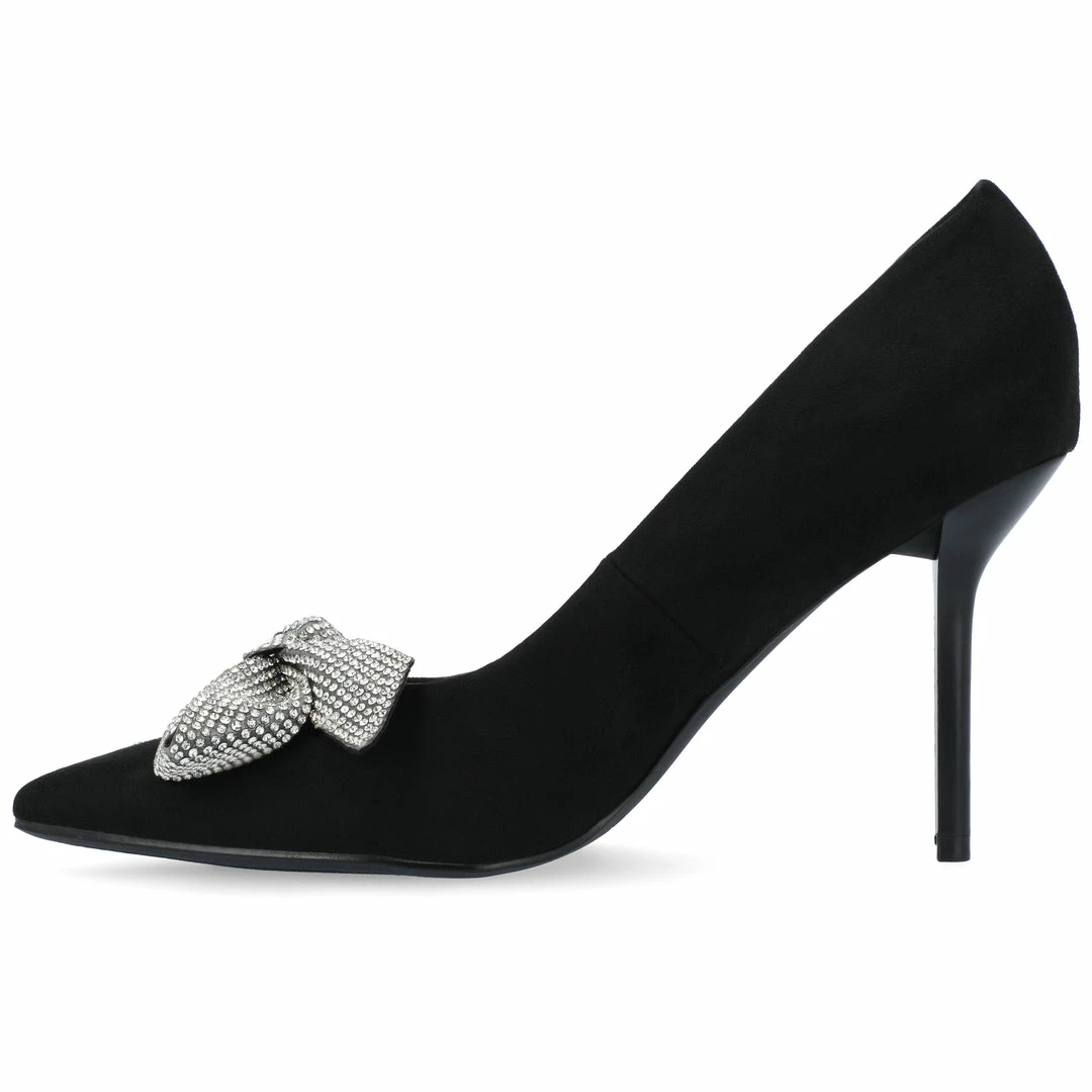 The Marcie heel from Journee Collection offers comfort and style for every occasion thanks to its timeless design details. With its 4 mm Tru Comfort Foamβ’ insole, supple vegan leather, stiletto heel, and rhinestone bow detail, this heel is sure to turn heads. A pointed-toe finishes the look for a classic touch. Heel Height – 3 3/4-inch Heel Type – Stiletto Platform Height – Flat-inch Shoe Width – Medium Closure Type – Slip-on Toe Style – Pointed Lining – Faux Leather Upper Material – Vegan Leather Outersole Material – Man-made Footbed – 4 MM Tru Comfort Foamβ’