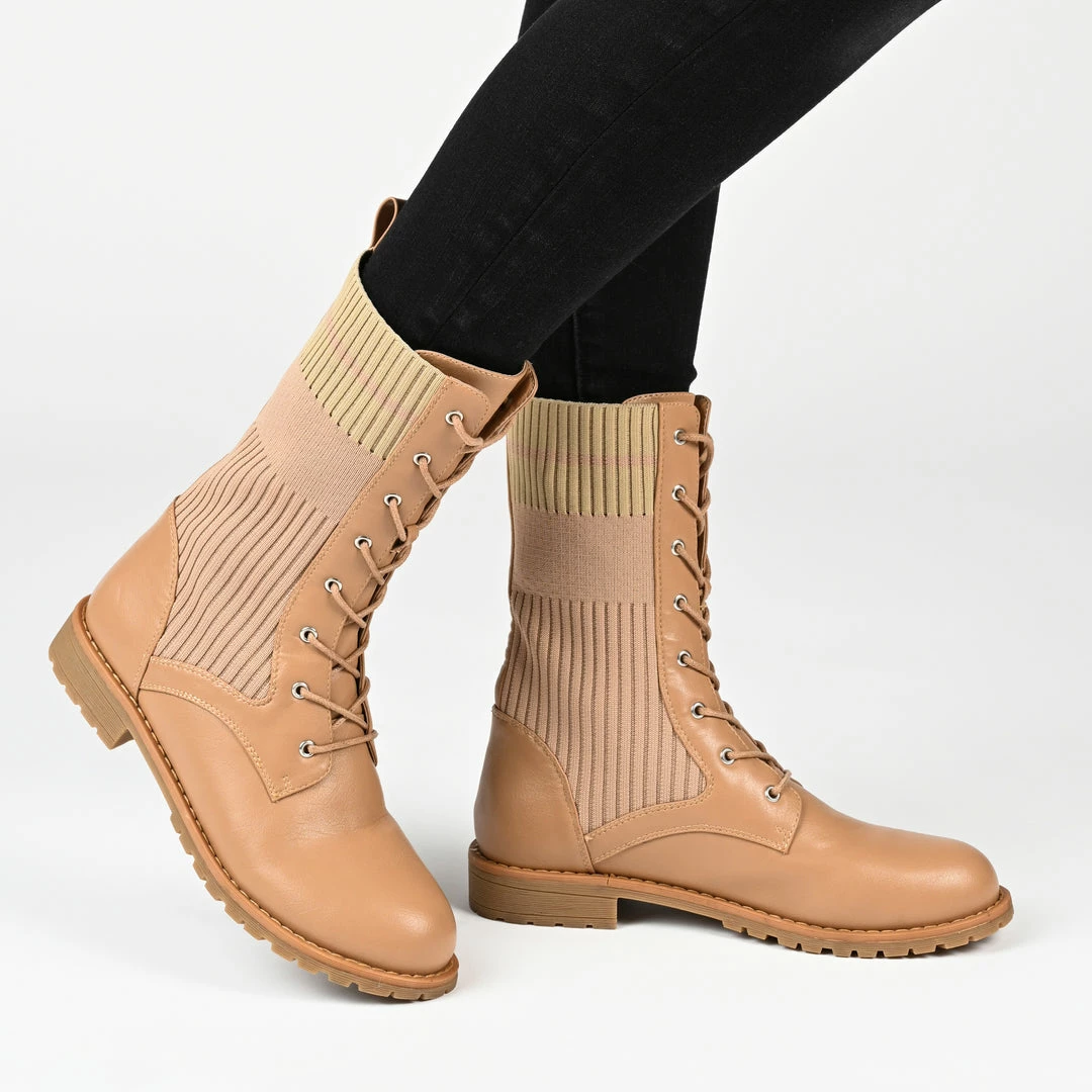 With a round-toe and lace-up detail, the Melei booties by Journey & Crew speak for themselves. Shaped with soft vegan leather knit fabric accent, this classic combat bootie strikes all the right notes. A super comfy 4 mm Tru Comfort Foamβ’ insole grounds this essential fall style. Heel Height – 1-inch Heel Type – Block Heel Platform Height – 1/2-inch Shaft Height – 8 1/2 inches Top Circumference – 10 inches Shoe Width – Medium Closure Type – Lace-up Toe Style – Round Lining – Man-made Upper Material – Man-made Outersole Material – Man-made Footbed – 4 MM Tru Comfort Foamβ’