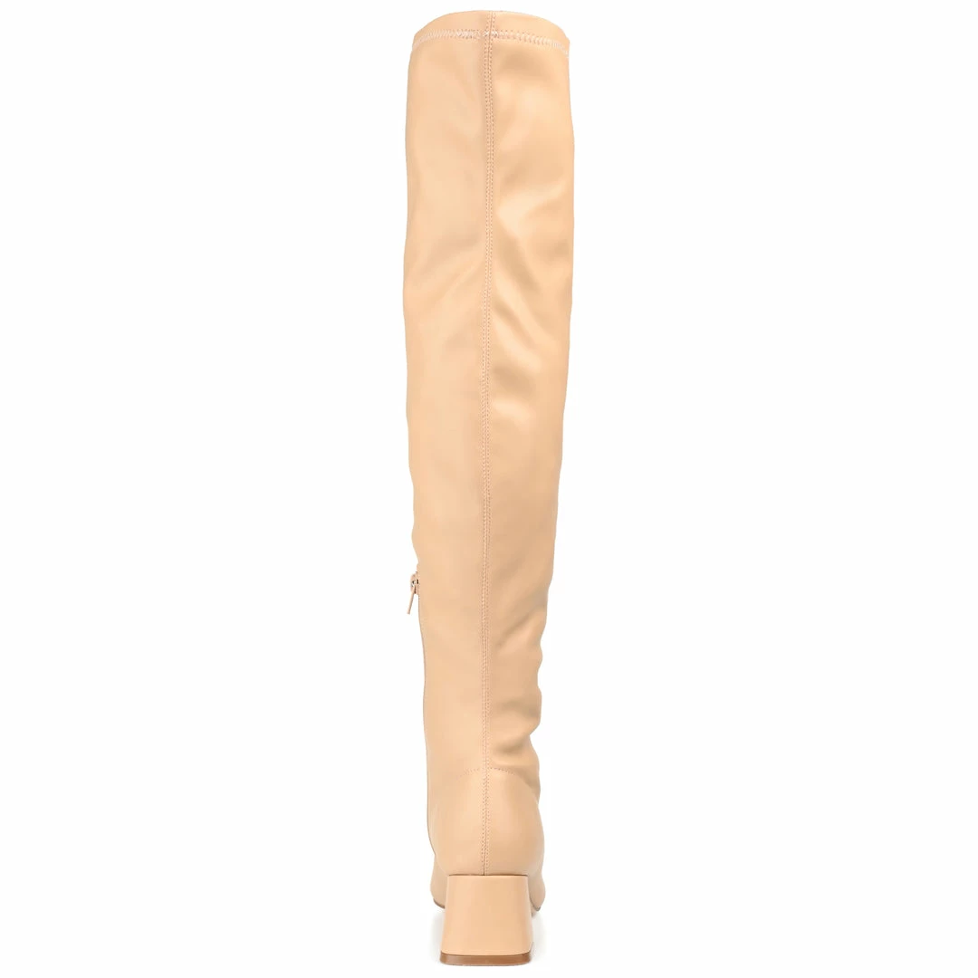 Polish off any outfit with the Melika by Journee Collection. A center seam detail and an almond-toe give this basic boot a simply chic look. This over-the-knee silhouette features a 4 mm Tru Comfort Foamโข insole, vegan leather, and a kicked-in block heel. Heel Height – 2 1/4-inch Heel Type – Block Heel Platform Height – Flat-inch Shaft Height – 20 1/2 inches Calf Circumference – 13 inches Top Circumference – 16 inches Shoe Width – Medium Closure Type – Inside Zip Toe Style – Almond Lining – Fabric Upper Material – Vegan Leather Outersole Material – Man-made Footbed – 4 MM Tru Comfort Foamโข