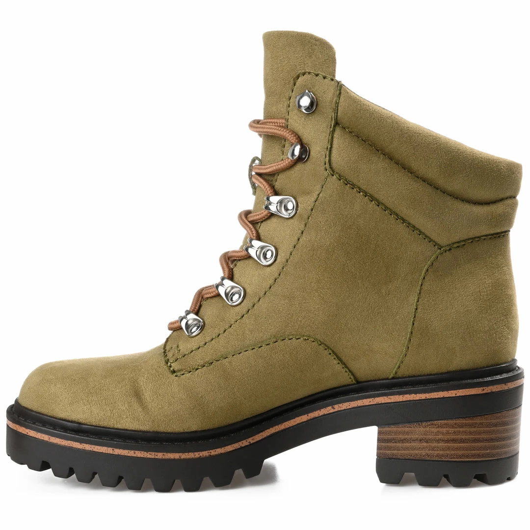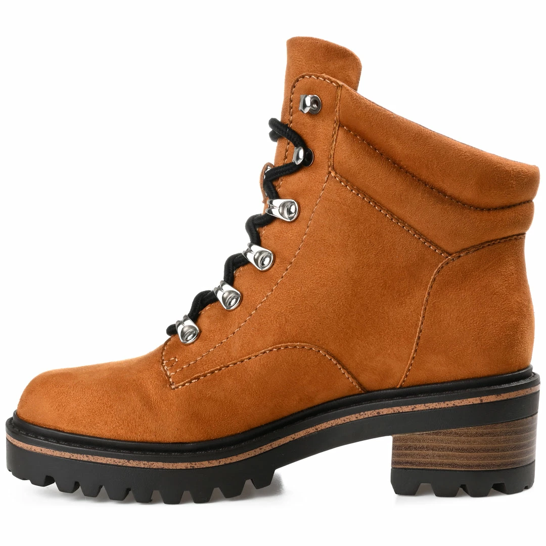 The Nyia bootie by Journee Collection is destined to take you places. This trendy hiker-styled bootie features vegan leather with a cushioned collar and a 4 mm Tru Comfort Foamβ’ insole. A lace-up design with metal hardware will hold you in tightly, and a treaded outsole with a wood inset detail elevates the look. Heel Height – 2-inch Heel Type – Stacked Platform Height – 1-inch Shaft Height – 4 inches Top Circumference – 11 inches Shoe Width – Medium Closure Type – Lace-up Toe Style – Round Lining – Fabric Upper Material – Vegan Leather Outersole Material – Man-made Footbed – 4 MM Tru Comfort Foamβ’