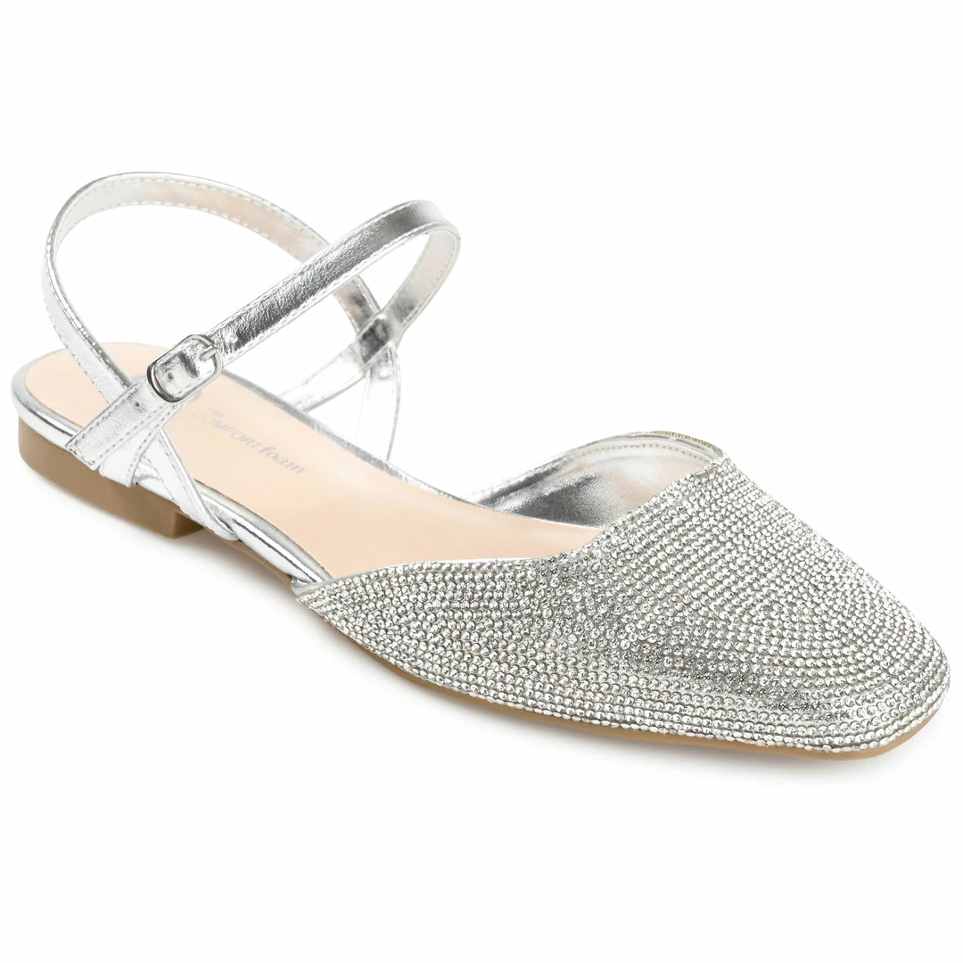 Catch eyes in the best way possible with the Nysha flats by Journee Collection. This square-toed flat serves up glitz and glam without the fuss with man-made materials covered in shimmering rhinestones. A low block heel adds a little lift, and a 4 mm Tru Comfort Foamβ’ insole adds the perfect amount of cushion. Heel Height – 1/2-inch Heel Type – Block Heel Platform Height – Flat-inch Shoe Width – Medium Closure Type – Buckle Strap Type – Ankle Toe Style – Square Lining – Faux Leather Upper Material – Man-made Outersole Material – Man-made Footbed – 4 MM Tru Comfort Foamβ’