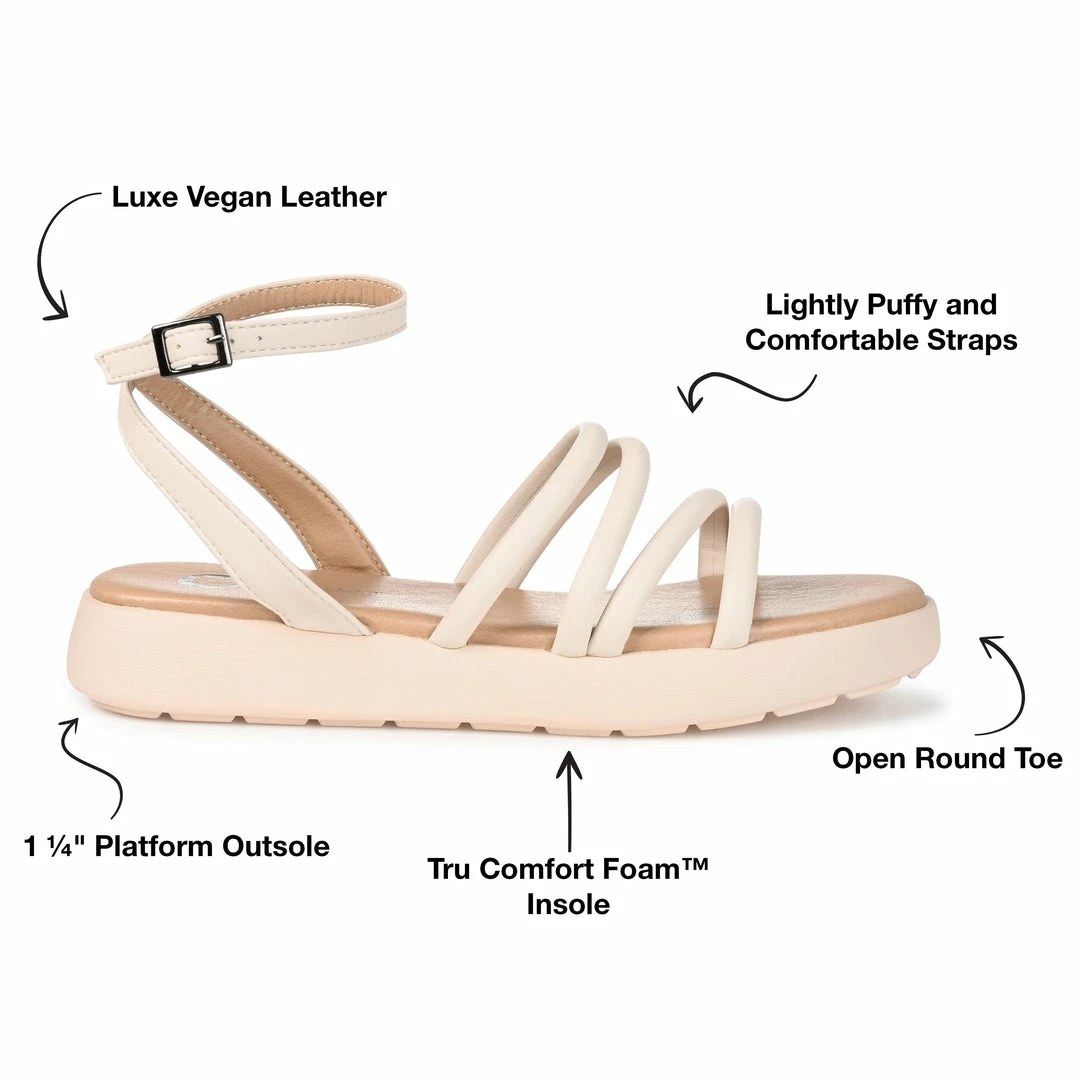 Perfect for those fun days in the sun, the Palomma sandal by Journee Collection. This modern style features a wraparound buckle strap and puffed vegan leather straps at the toe. A 4 mm Tru Comfort Foamβ’ lines the insole for extra comfort, and a thick white sole adds retro charm to the design. Heel Height – 1 1/4-inch Heel Type – Sole Platform Height – 1-inch Shoe Width – Medium Closure Type – Buckle Strap Type – Ankle Toe Style – Open Lining – Faux Leather Upper Material – Vegan Leather Outersole Material – Man-made Footbed – 4 MM Tru Comfort Foamβ’