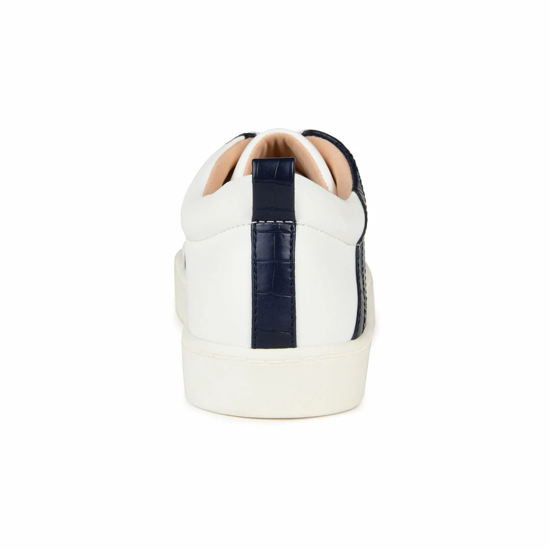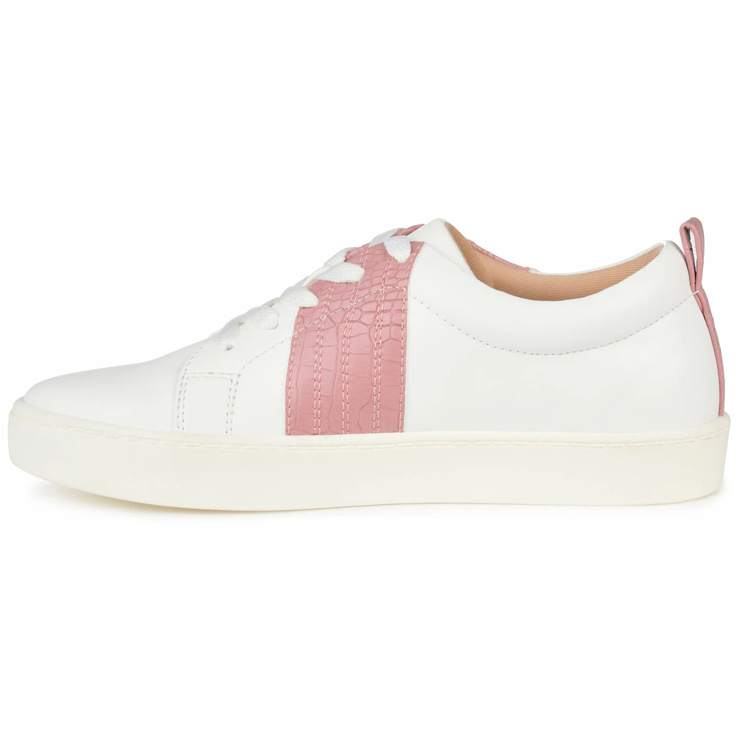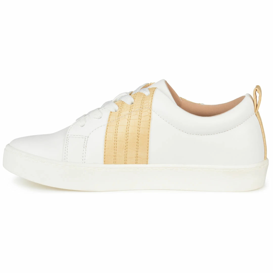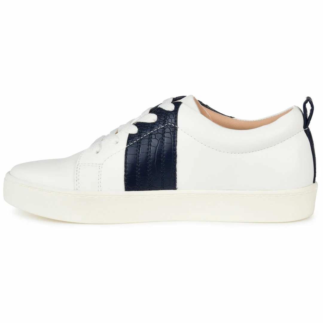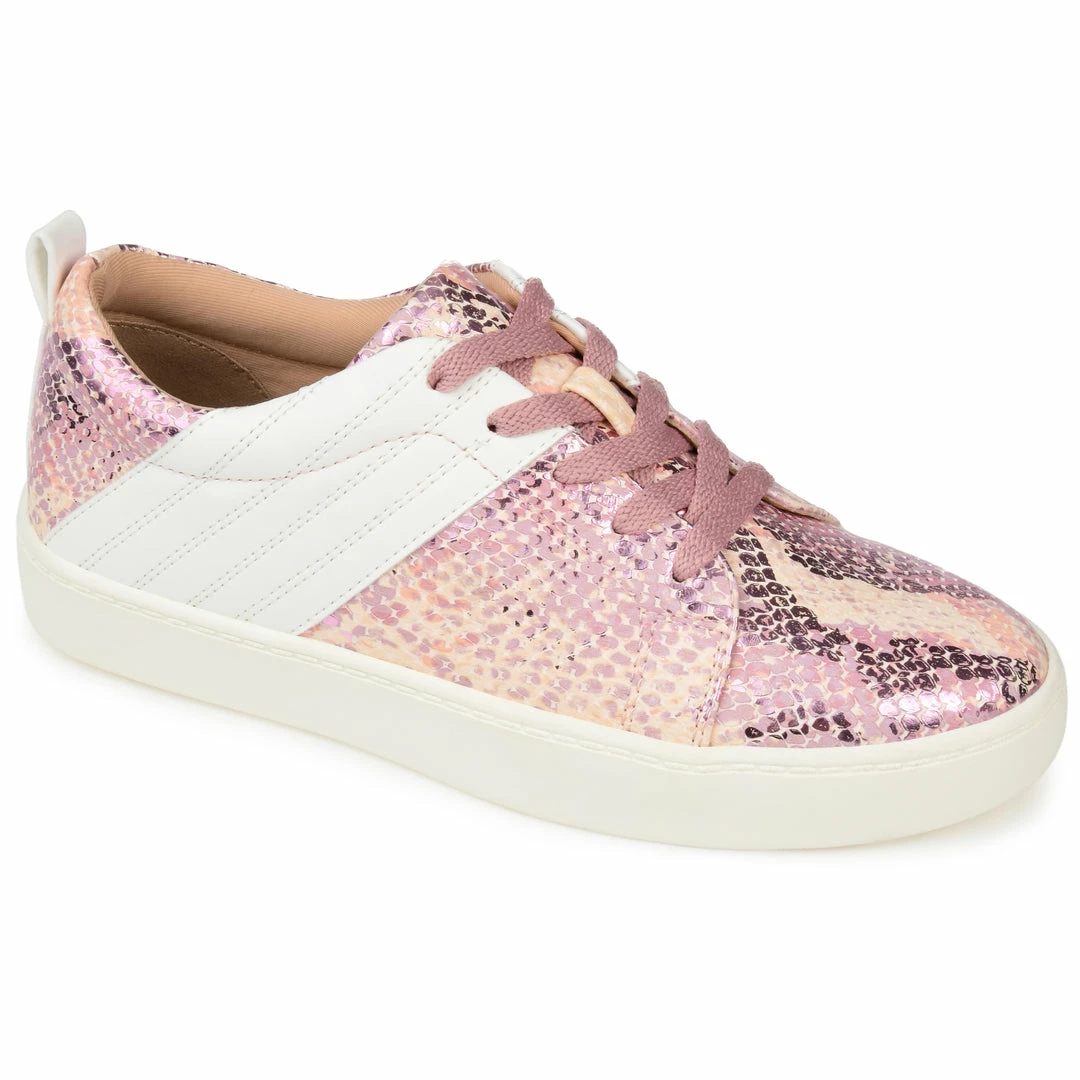 The Raaye is a low-cut sneaker that knows how to make a bold statementโtopped with a tri-stitch snake-skin textured accent and a tab at the back of the heel. This vegan leather design by Journee Collection features a lace-up closure and an 8 mm Tru Comfort Foamโข footbed lined with a sleek rubber sole (This unique snakeskin inspired style features an individual print). Heel Height – 1-inch Heel Type – Sole Platform Height – 1-inch Shoe Width – Medium Closure Type – Lace-up Toe Style – Almond Lining – Fabric Upper Material – Vegan Leather Outersole Material – Rubber Footbed – 8 MM Tru Comfort Foamโข