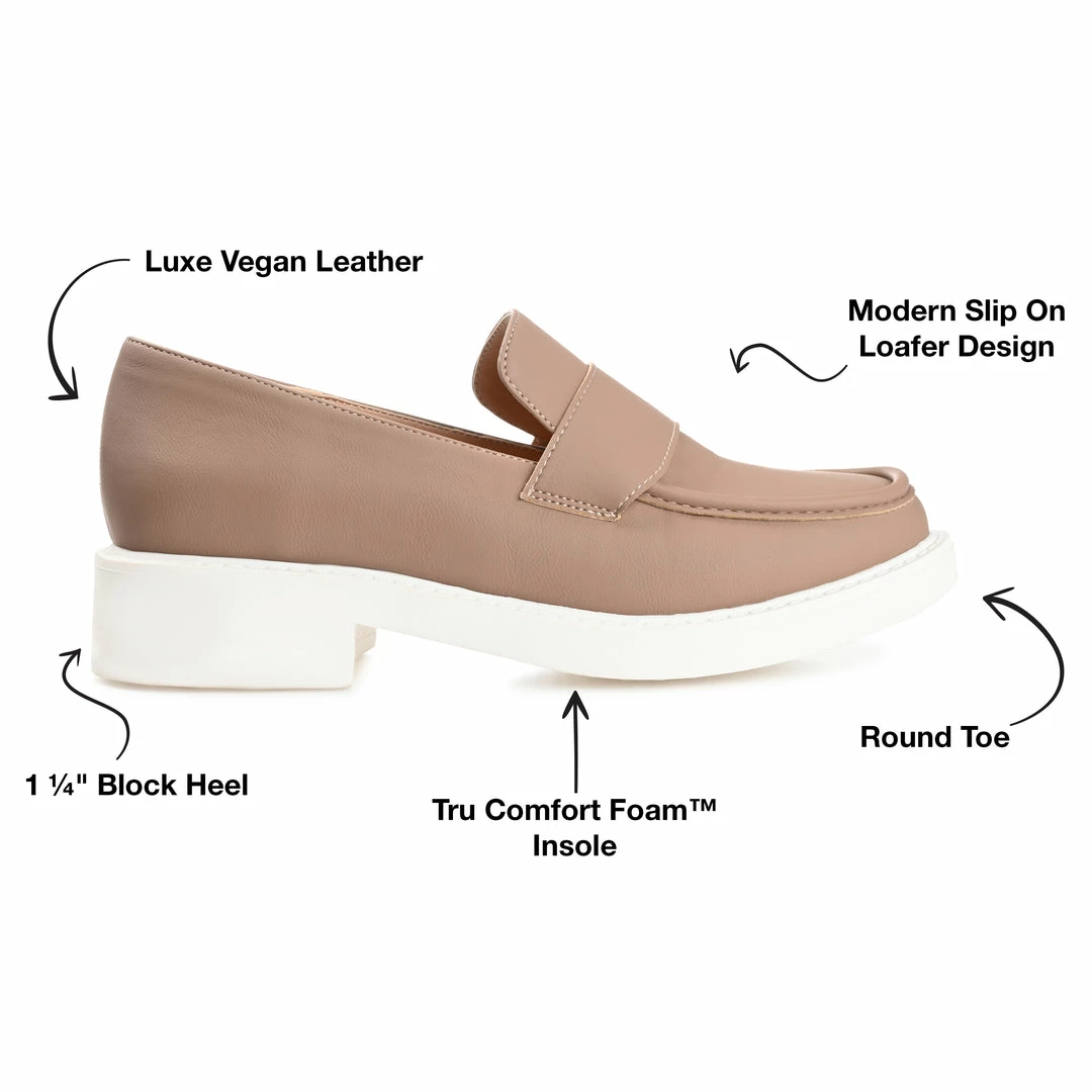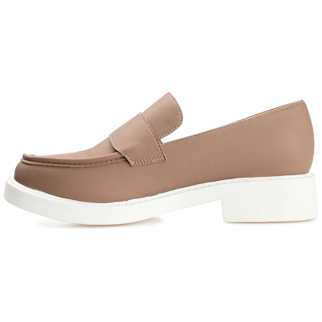 The perfect shoe for a 90s inspired look, the Saydee by Journee Collection. This retro flat is effortlessly cool with vegan leather uppers and a moc-toe detail. A bold chunky sole and a 4 mm Tru Comfort Foamβ’ footbed finish this round-toe loafer for a supportive and forgiving fit. Heel Height – 1 1/4-inch Heel Type – Block Heel Platform Height – 1/2-inch Shoe Width – Medium Closure Type – Slip-on Toe Style – Round Lining – Faux Leather Upper Material – Vegan Leather Outersole Material – Man-made Footbed – 4 MM Tru Comfort Foamβ’