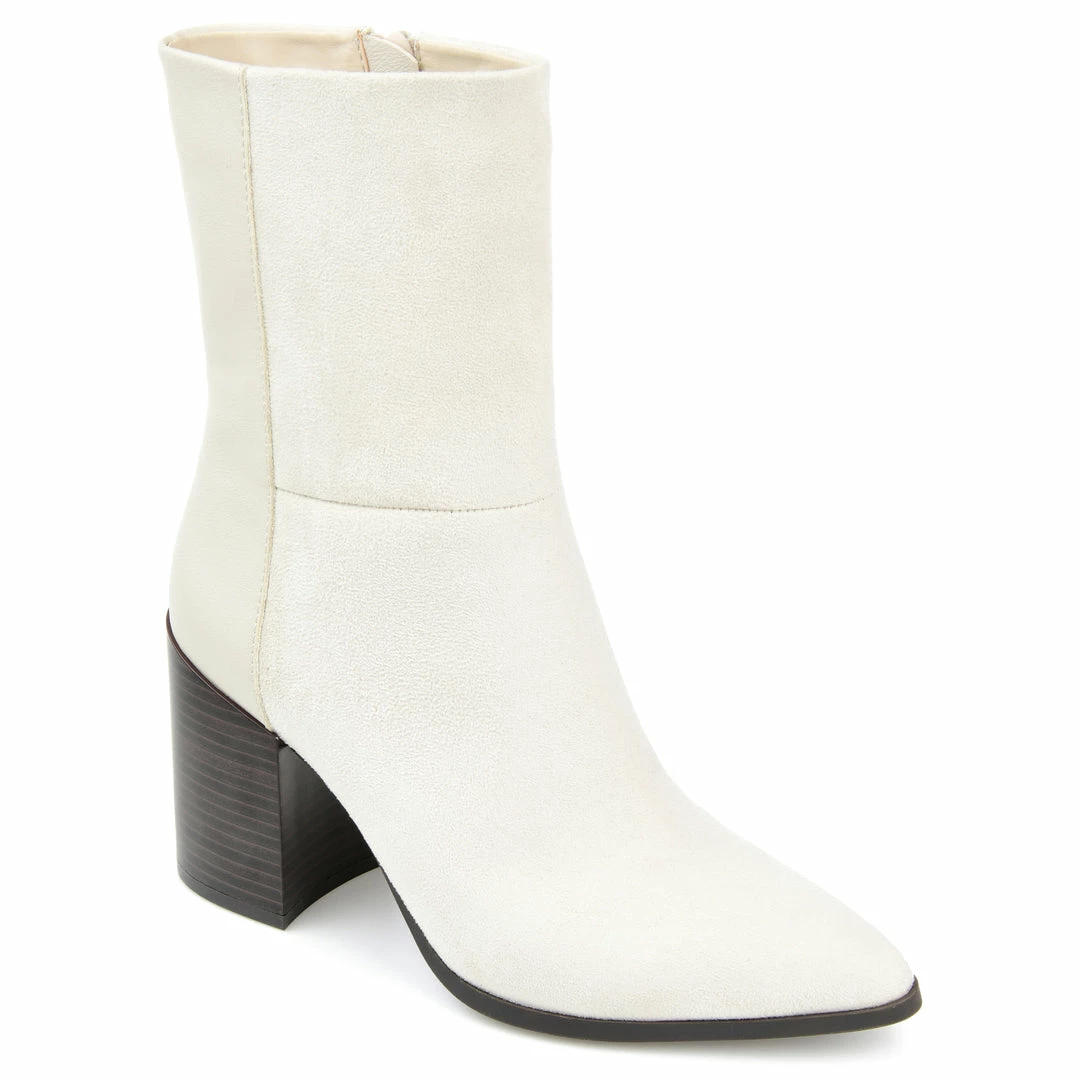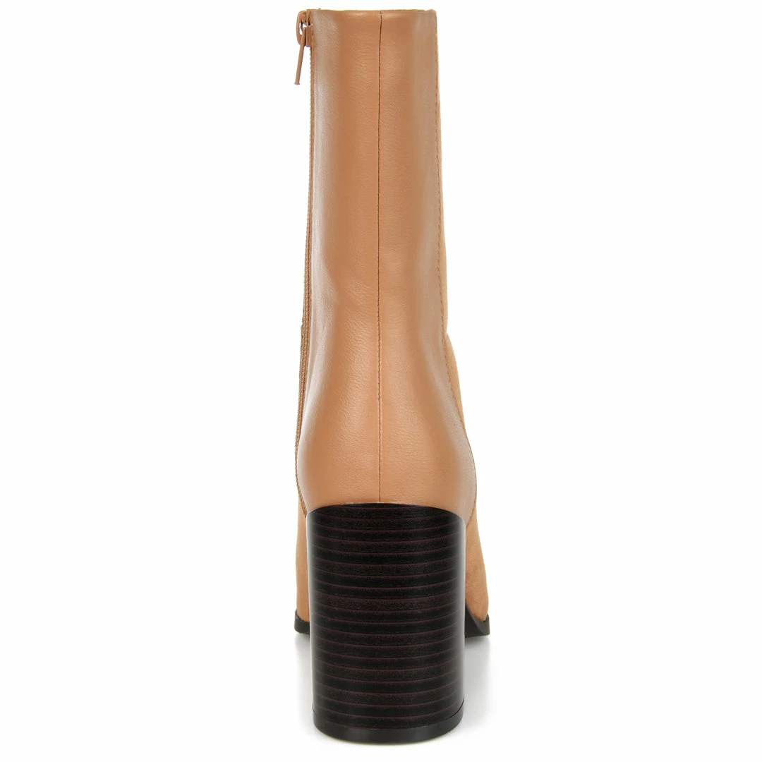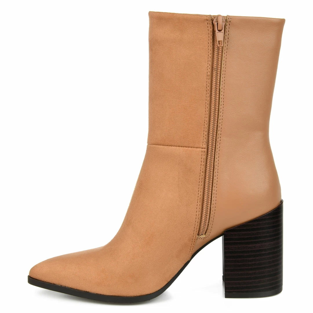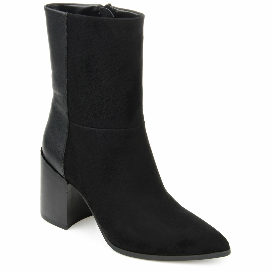 Two-tone details add a bold touch to the Sharlie bootie by Journee Collection. This infinitely wearable vegan leather bootie features a pointed-toe and a smooth zipper entry. A 4 mm Tru Comfort Foamβ’ footbed supported by a block heel keeps you on your feet with ease. Heel Height – 3 1/2-inch Heel Type – Stacked Platform Height – Flat-inch Shaft Height – 6 1/2 inches Top Circumference – 10 1/2 inches Shoe Width – Medium Closure Type – Inside Zip Toe Style – Pointed Lining – Fabric Upper Material – Vegan Leather Outersole Material – Man-made Footbed – 4 MM Tru Comfort Foamβ’
