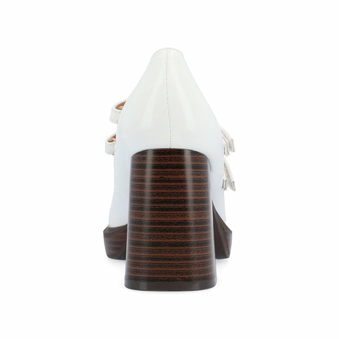 Our Shasta heels from Journee Collection will be the perfect shoe for when you want to rock a look no one will forget. With their 4 mm Tru Comfort Foamβ’ insole, patent luxe vegan leather, platform heel, stacked block heel, and double strap and hook loop closure, this style takes you from old to bold. A mary jane style like this is practically a guarantee to get you compliments. Heel Height – 3 1/4-inch Heel Type – Platform Platform Height – 1-inch Shoe Width – Medium Closure Type – Hook and Loop Strap Type – Multi -Strap Toe Style – Square Lining – Faux Leather Upper Material – Vegan Leather Outersole Material – Man-made Footbed – 4 MM Tru Comfort Foamβ’