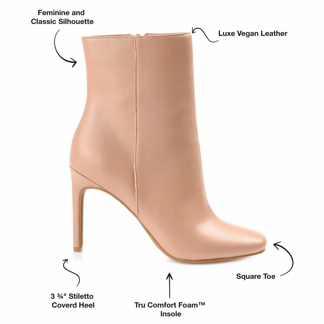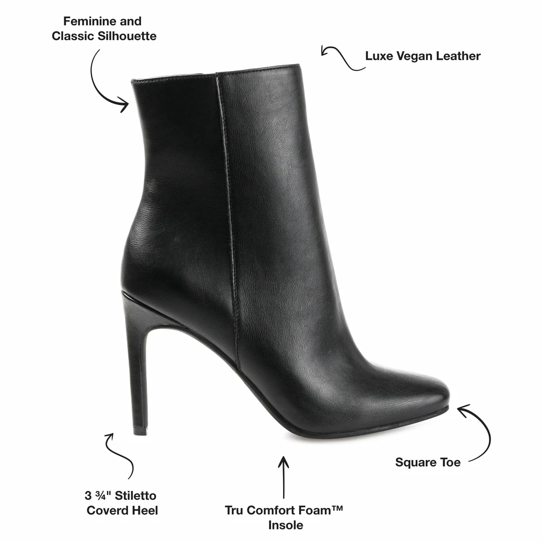 Booties that are ready in a New York minute, the Silvy by Journee Collection. With a sleek profile and a modern square-toe, this vegan leather ankle bootie keeps it street-chic. An inside zipper secures the fit, and a slender pump heel paired with a 4 mm Tru Comfort Foamβ’ footbed adds a walkable lift. Heel Height – 3 3/4-inch Heel Type – Heel Platform Height – Flat-inch Shaft Height – 5 1/2 inches Top Circumference – 10 1/2 inches Shoe Width – Medium Closure Type – Inside Zip Toe Style – Square Lining – Faux Fur Upper Material – Vegan Leather Outersole Material – Man-made Footbed – 4 MM Tru Comfort Foamβ’