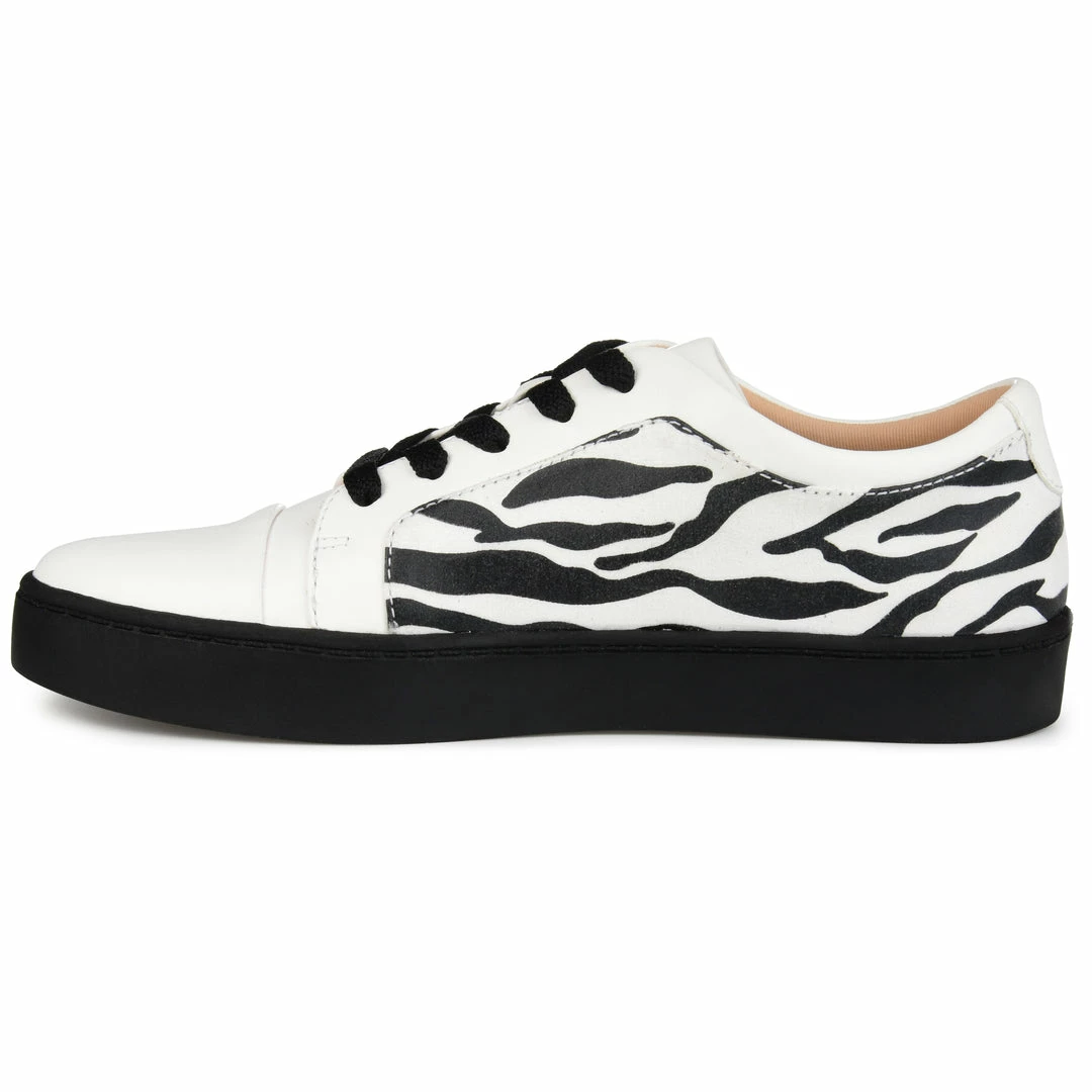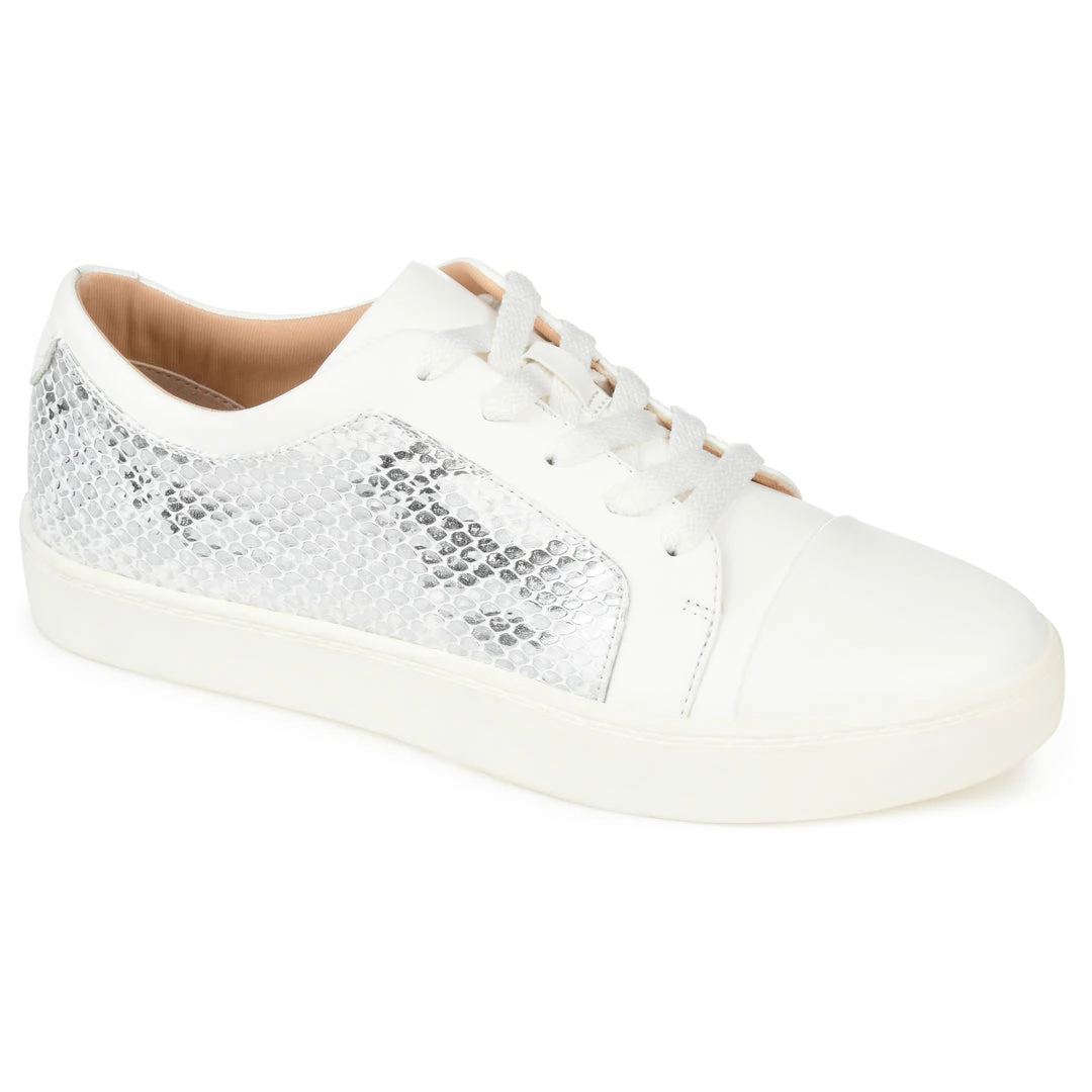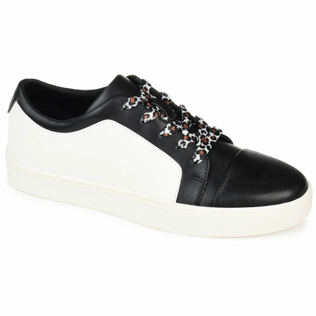 A fresh take on an essential athleisure staple. The Taschi is a low-top vegan leather sneaker by Journee Collection detailed with a two-tone pattern at the vamp. A classic lace-up closure, sleek rubber sole, and a heavenly 8 mm Tru Comfort Foamβ’ footbed finish this cool casual design (Each pair comes with a uniquely patterned animal print that is as individual as its wearer). Heel Height – 1-inch Heel Type – Sole Platform Height – 1-inch Shoe Width – Medium Closure Type – Lace-up Toe Style – Almond Lining – Fabric Upper Material – Vegan Leather Outersole Material – Rubber Footbed – 8 MM Tru Comfort Foamβ’