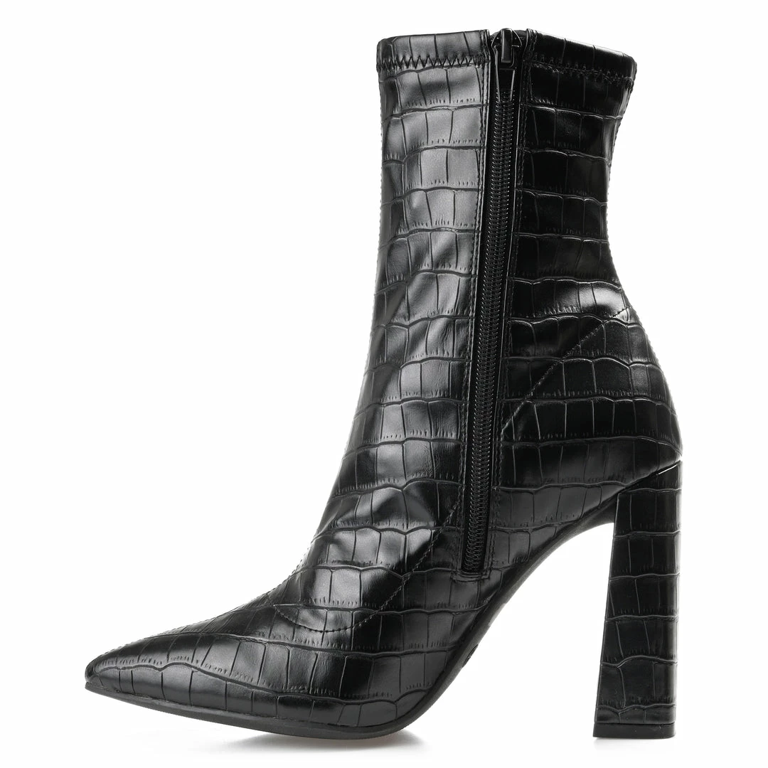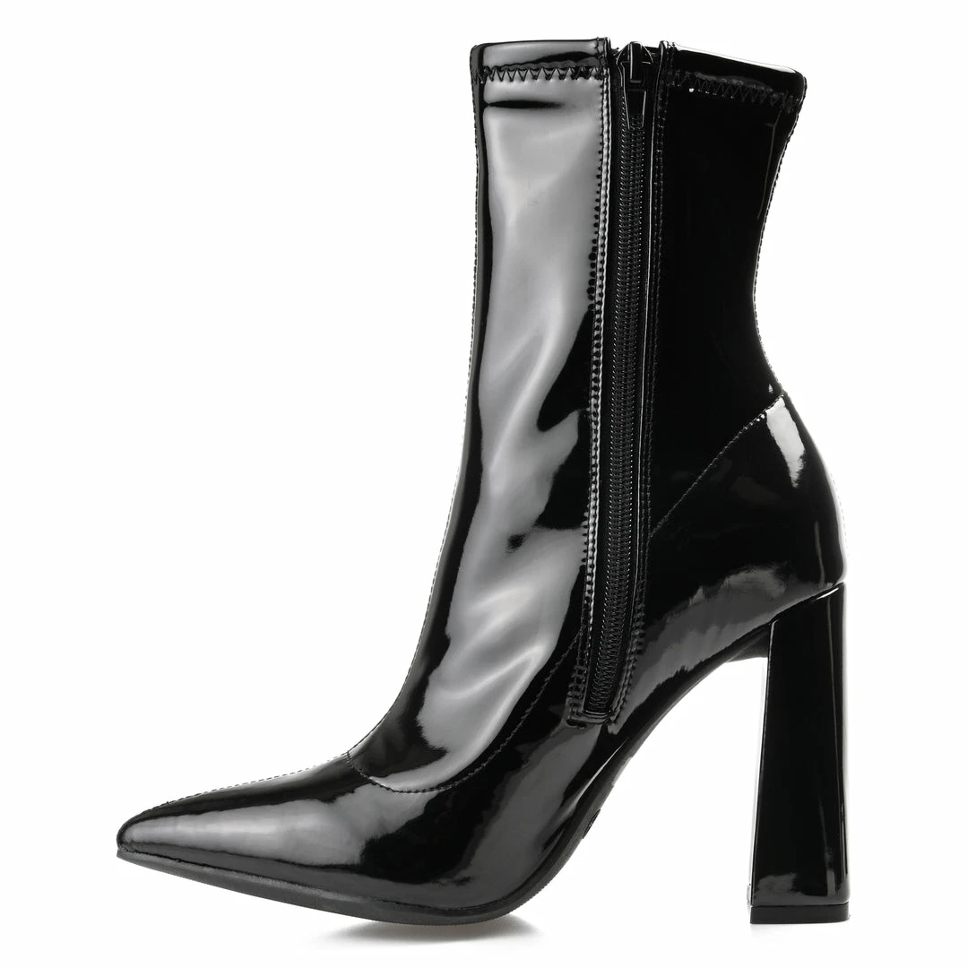 Party like it’s the 90s again! The Veralee by Journee Collection is a sassy style rendered with stretchy vegan leather uppers fastened by an inside zipper entry. A lofty block heel and a 4 mm Tru Comfort Foamโข footbed ground this retro bootie. Heel Height – 4-inch Heel Type – Block Heel Platform Height – Flat-inch Shaft Height – 6 inches Top Circumference – 9 1/2 inches Shoe Width – Medium Closure Type – Inside Zip Toe Style – Pointed Lining – Fabric Upper Material – Vegan Leather Outersole Material – Man-made Footbed – 4 MM Tru Comfort Foamโข