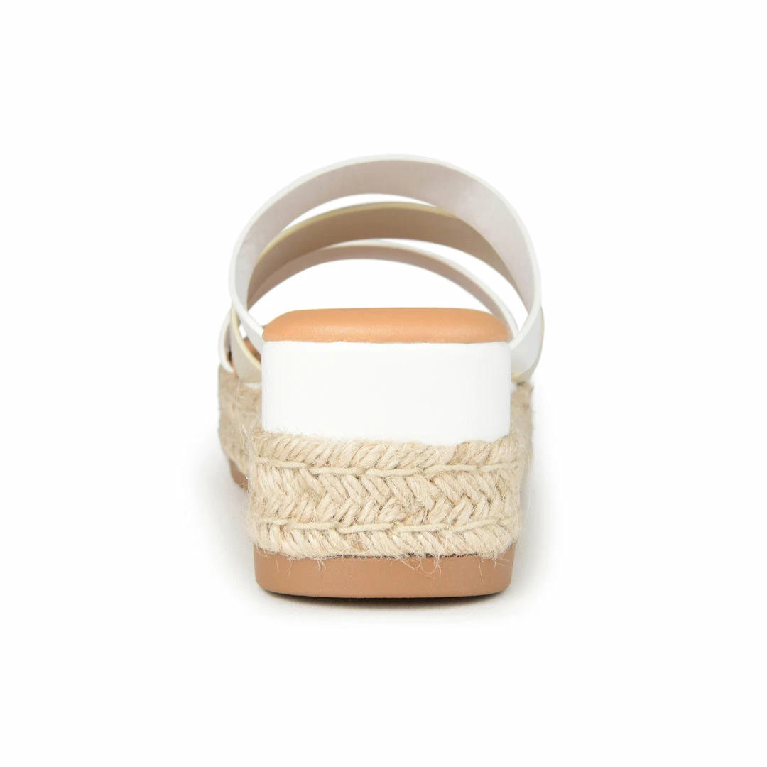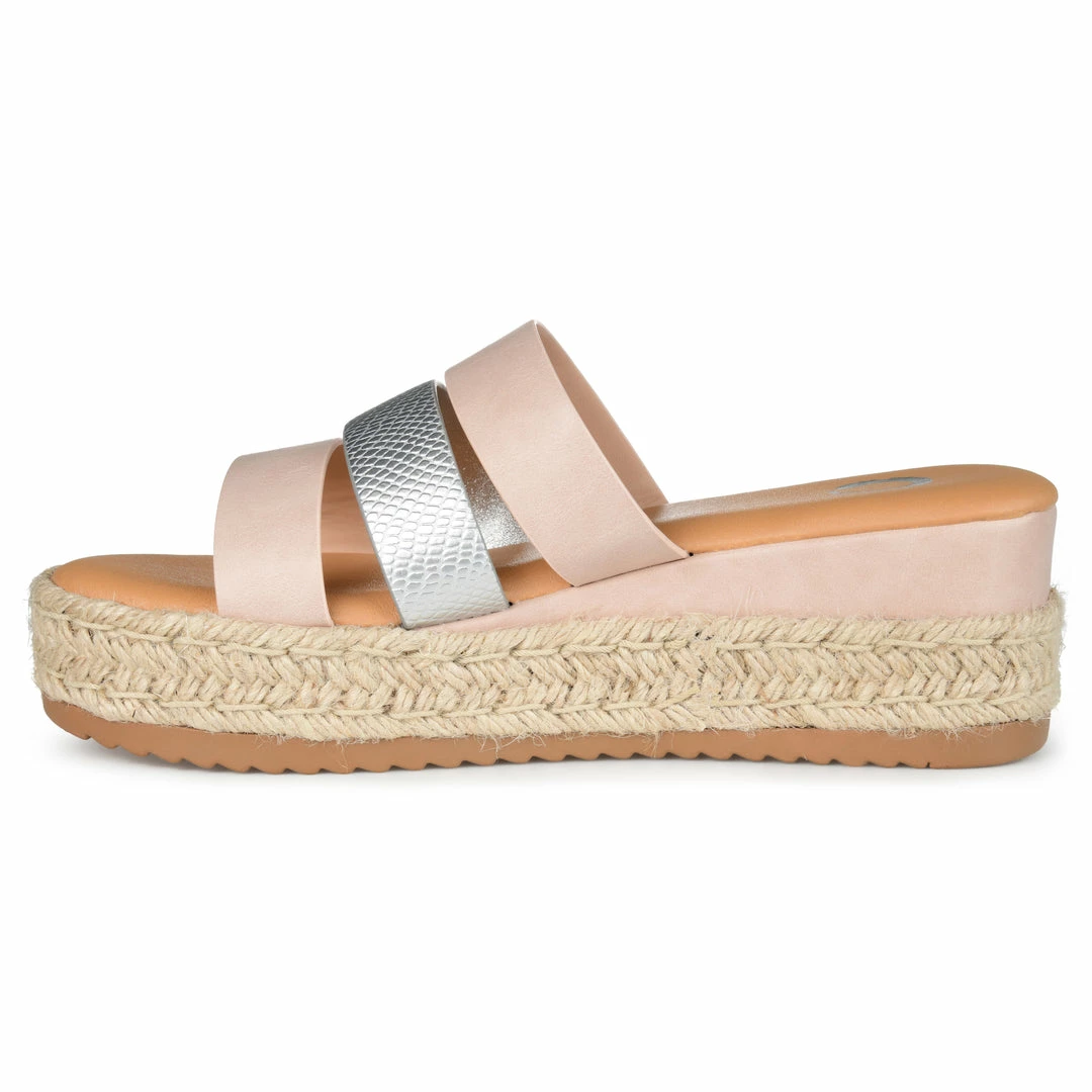 Bring on the summer vibes with the Whitty by Journee Collection. This slide-on sandal features multi-colored triple straps that are sure to brighten your day. Soft vegan leather uppers, a 6 mm Tru Comfort Foamβ’ footbed, and a wedge heel wrapped in espadrille ground the design for a textured look. Heel Height – 2 1/2-inch Heel Type – Wedge Platform Height – 1 1/2-inch Shoe Width – Medium Closure Type – Slip-on Strap Type – Multi -Strap Toe Style – Open Lining – Faux Leather Upper Material – Vegan Leather Outersole Material – Man-made Footbed – 6 MM Tru Comfort Foamβ’