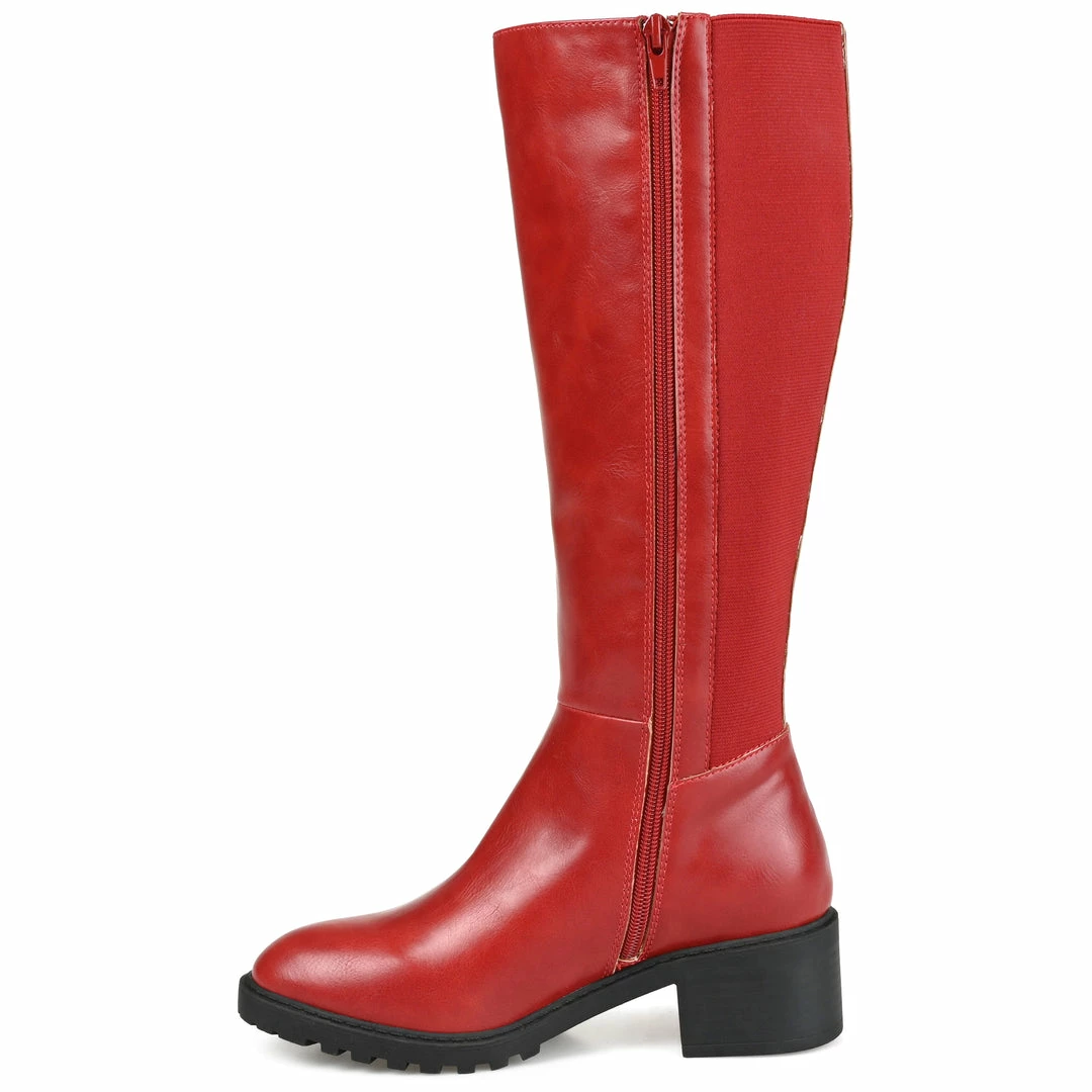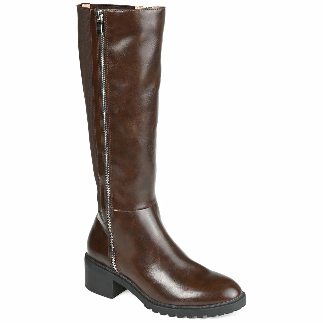 Perfect any look with the Morgaan by Journee Collection. An almond-toe and a zipper detail give this wide-calf boot a bold look. This knee-high silhouette features a 4 mm Tru Comfort Foamโข insole, vegan leather, and a low block heel. Heel Height – 2-inch Heel Type – Stacked Platform Height – 1/2-inch Shaft Height – 15 inches Calf Circumference – 14 1/2 inches Top Circumference – 15 1/2 inches Shoe Width – Medium Closure Type – Inside Zip Toe Style – Almond Lining – Fabric Upper Material – Vegan Leather Outersole Material – Man-made Footbed – 4 MM Tru Comfort Foamโข