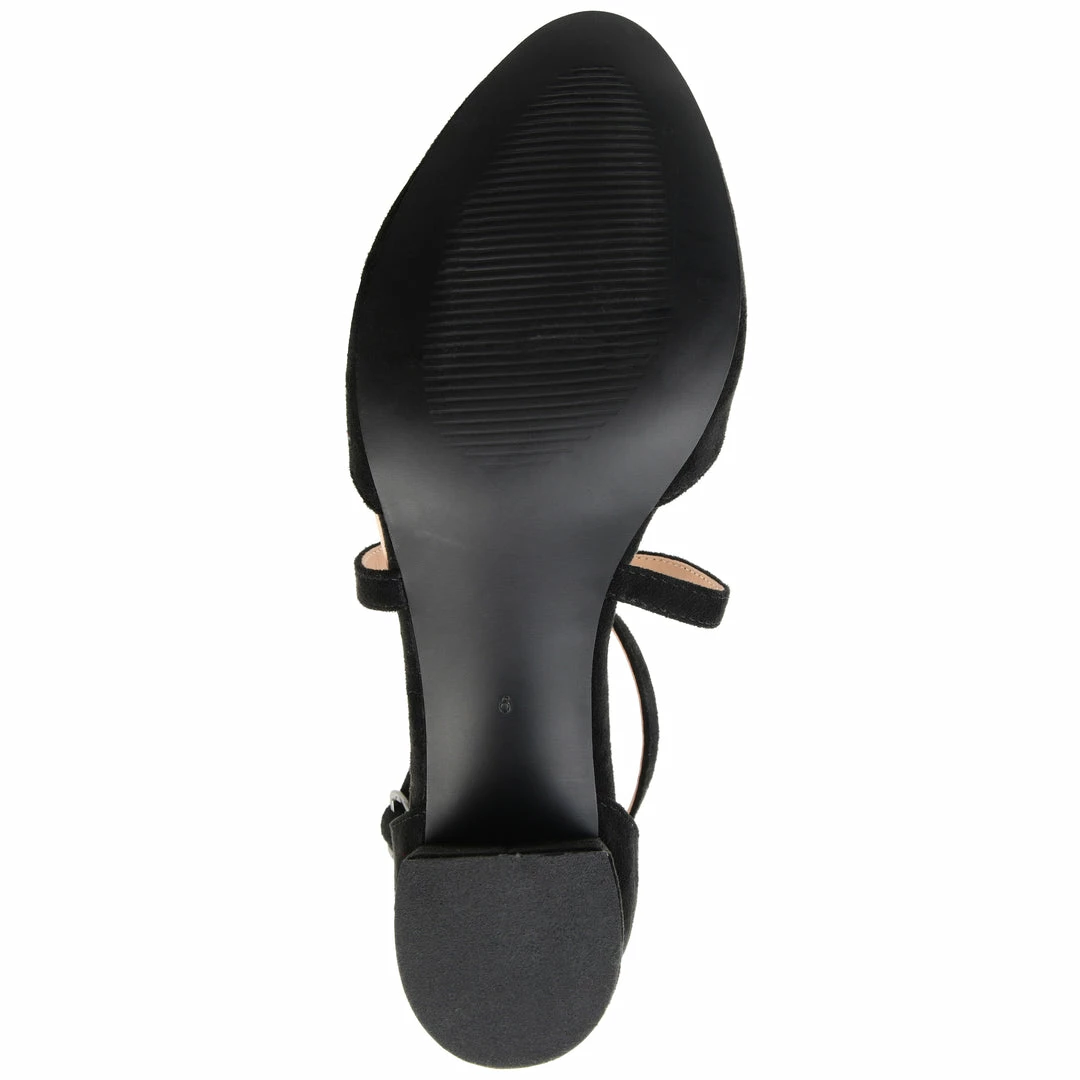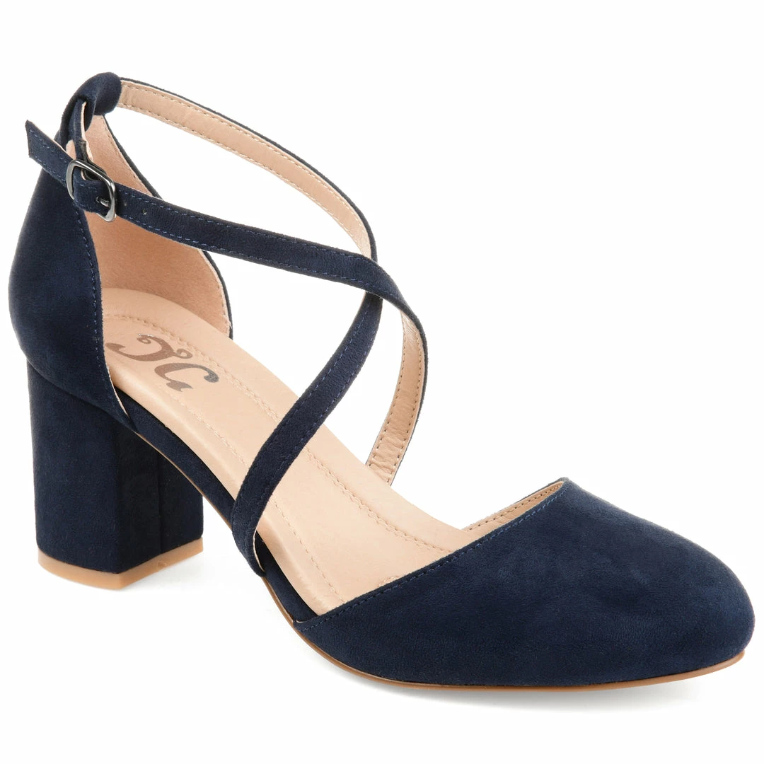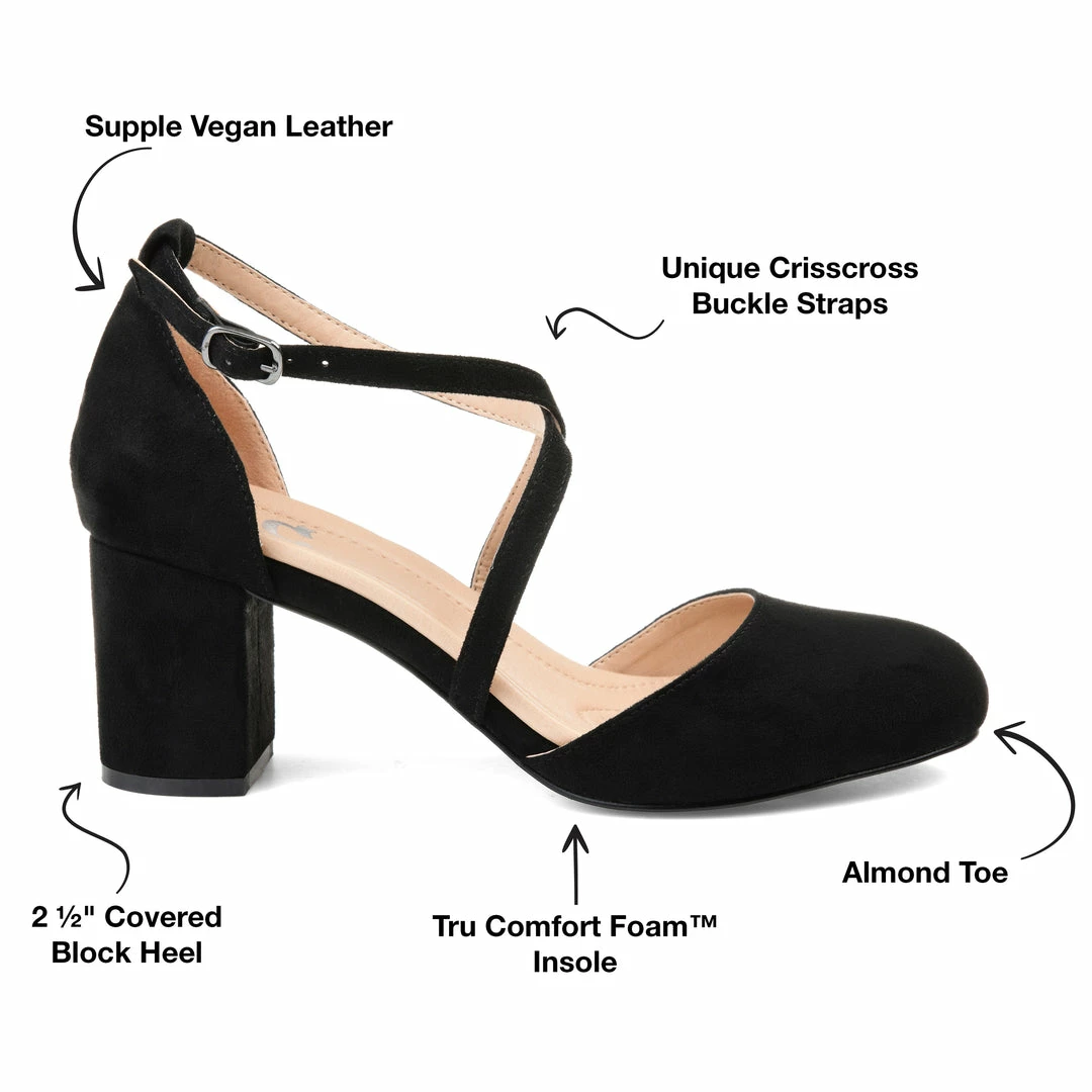 A classic with a twist, the Foster by Journee Collection. This almond-toe d’Orsay is topped with a crisscrossed buckled strap detail. Soft micro suede uppers and a wide-width footbed with a 4 mm Tru Comfort Foamโข insole finish the look. Heel Height – 2 1/2-inch Heel Type – Block Heel Platform Height – 1/2-inch Shoe Width – Wide Closure Type – Buckle Strap Type – Ankle Toe Style – Almond Lining – Faux Suede Upper Material – Micro Suede Outersole Material – Faux Suede over Synthetic Footbed – 4 MM Tru Comfort Foamโข