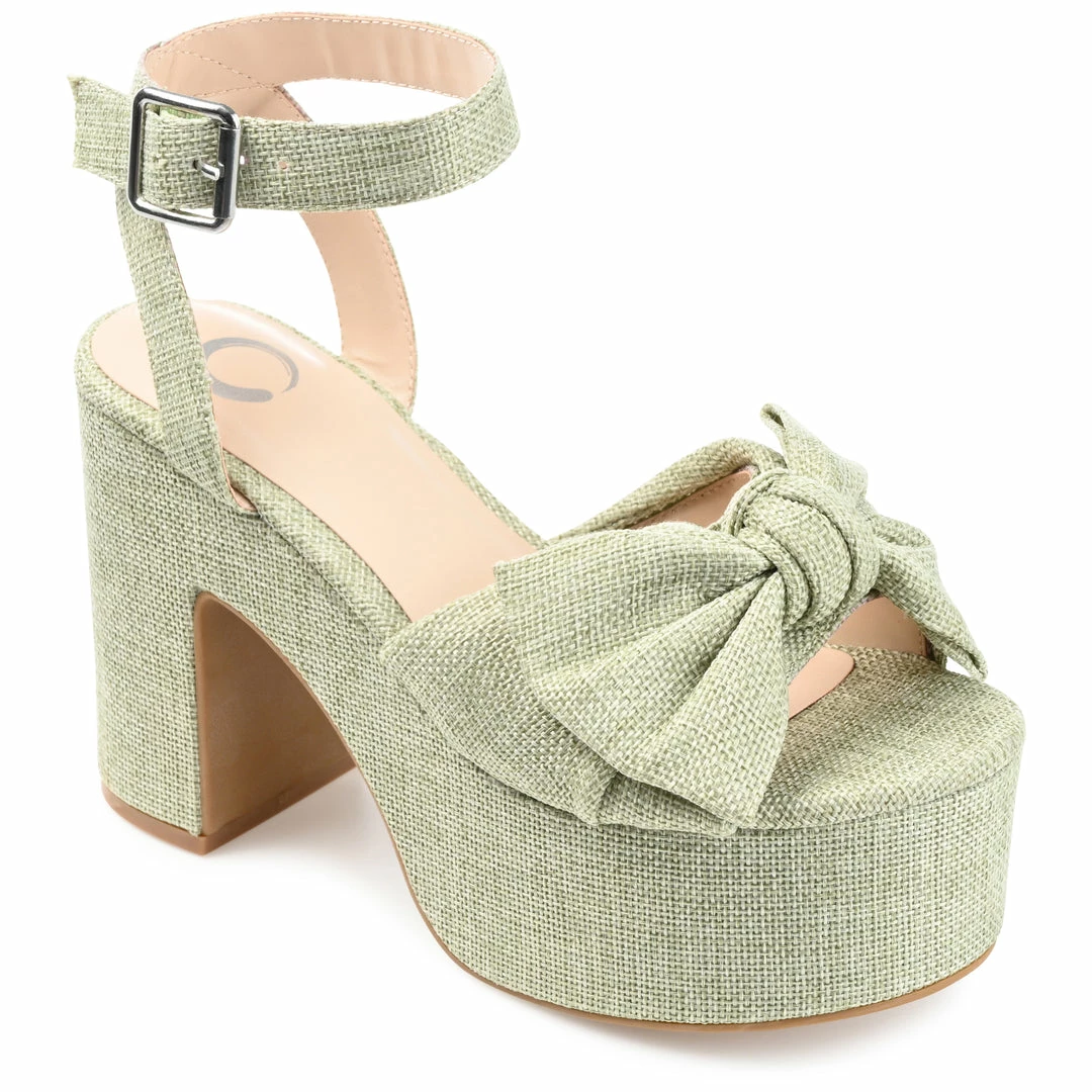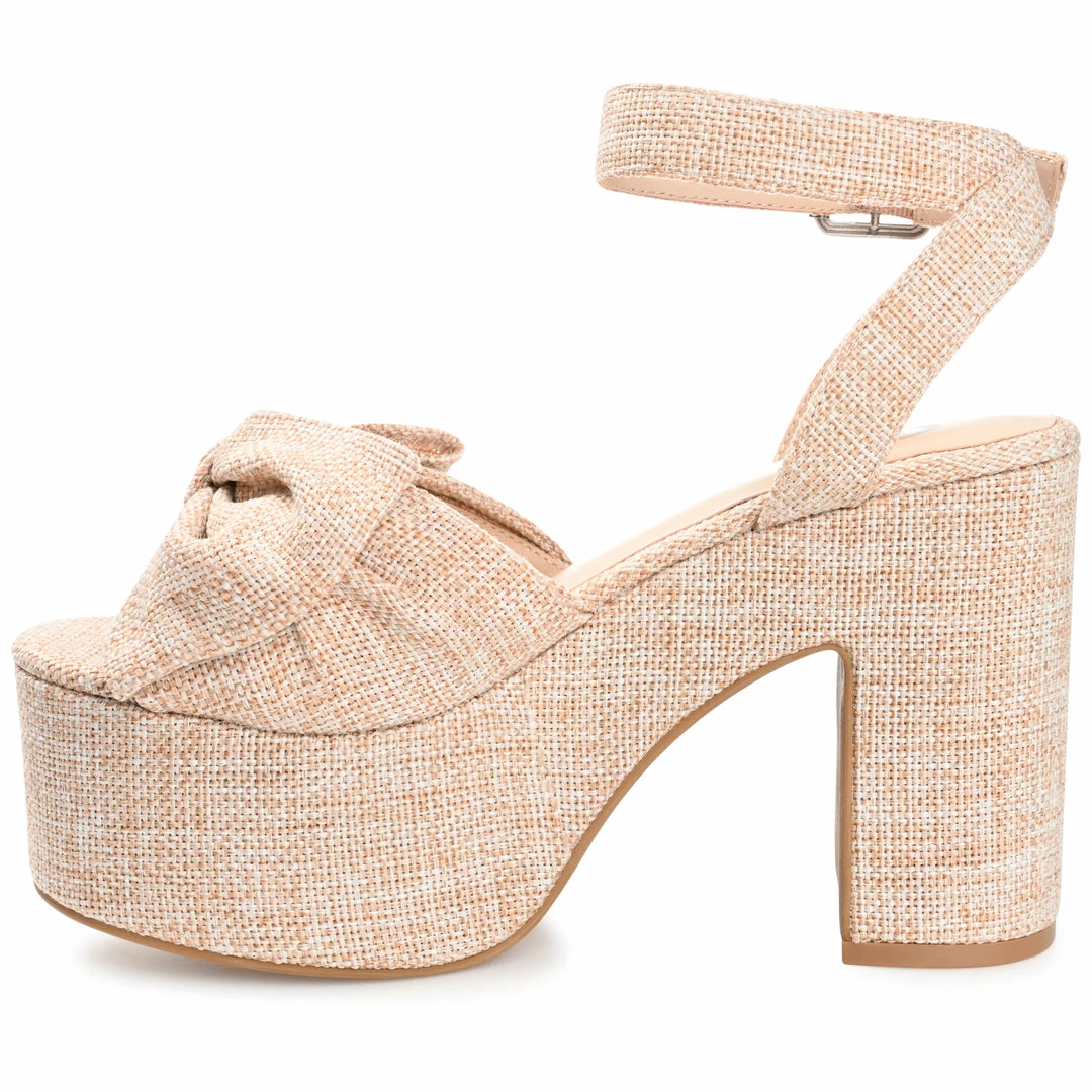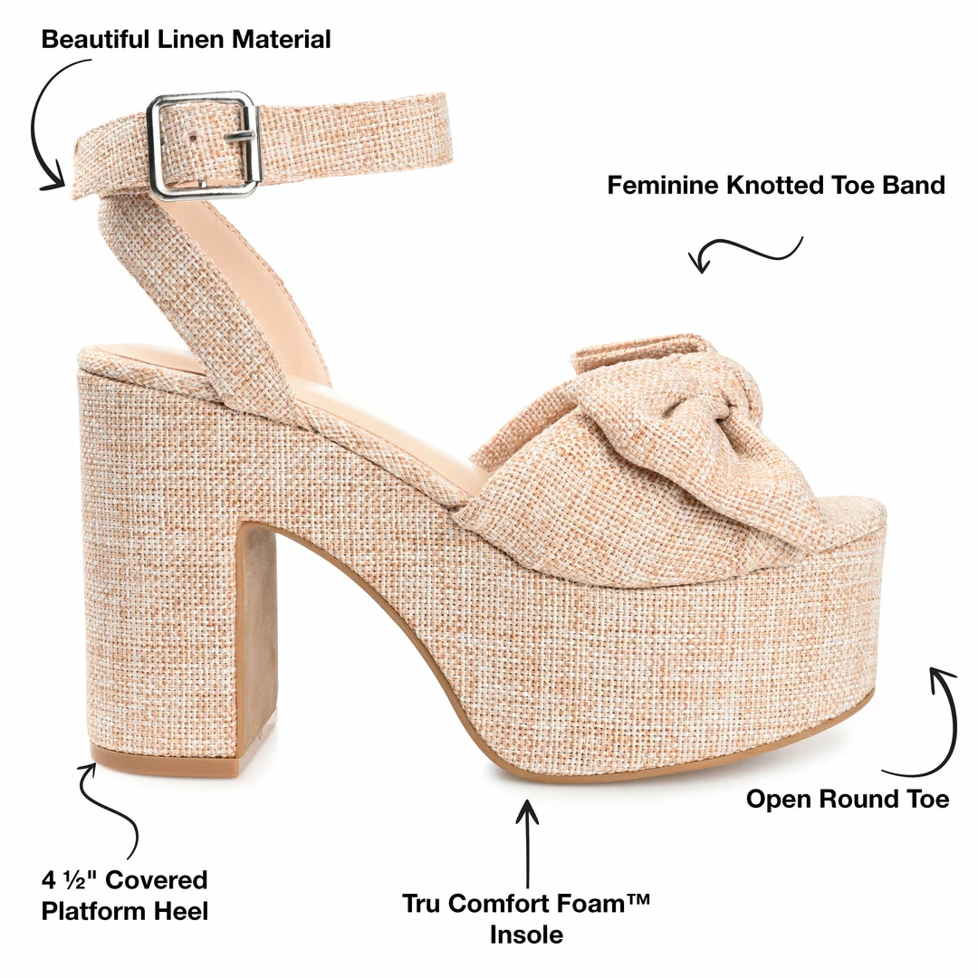 These platforms just might become the only shoe you wear this summer. The Zenni by Journee Collection boasts a comfortable fit with breezy linen uppers lined with a 4 mm Tru Comfort Foamβ’ footbed. A platform heel gives you a dramatic lift, and a bow accent tops the design. Heel Height – 4 1/2-inch Heel Type – Platform Platform Height – 2-inch Shoe Width – Medium Closure Type – Buckle Strap Type – Ankle Toe Style – Open Lining – Faux Leather Upper Material – Man-made Outersole Material – Man-made Footbed – 4 MM Tru Comfort Foamβ’
