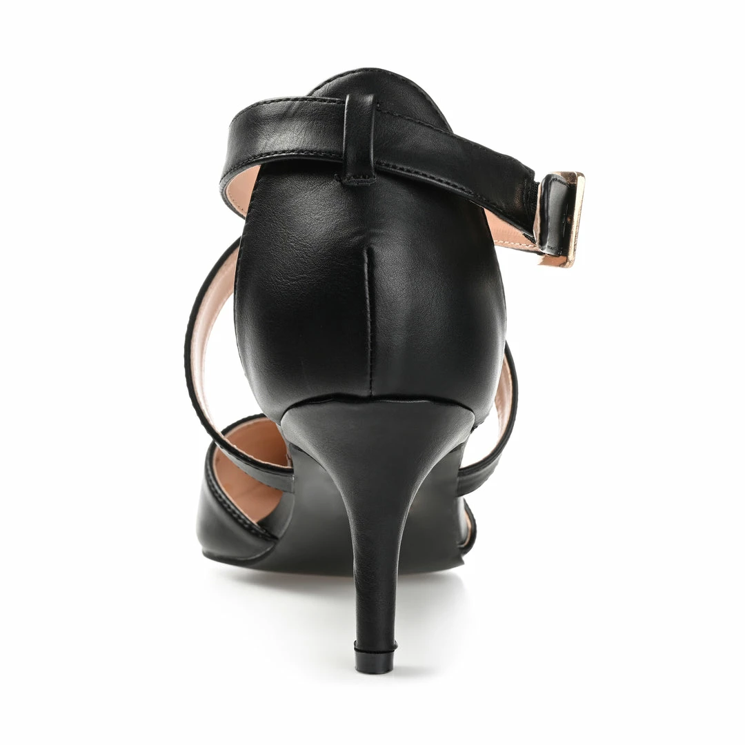 The Riva pump by Journee Collection is comfortable enough for work but dressy enough for a night out. This pointed-toe heel features a wide-width footbed and a walkable, low heel for a comfortable fit. A crisscross strap and buckled closure shape this vegan leather silhouette. Heel Height – 2 3/4-inch Heel Type – Heel Platform Height – 1/2-inch Shoe Width – Wide Closure Type – Buckle Strap Type – Ankle Toe Style – Pointed Lining – Faux Leather Upper Material – Faux Leather Outersole Material – Faux Leather over Synthetic Footbed – Padded