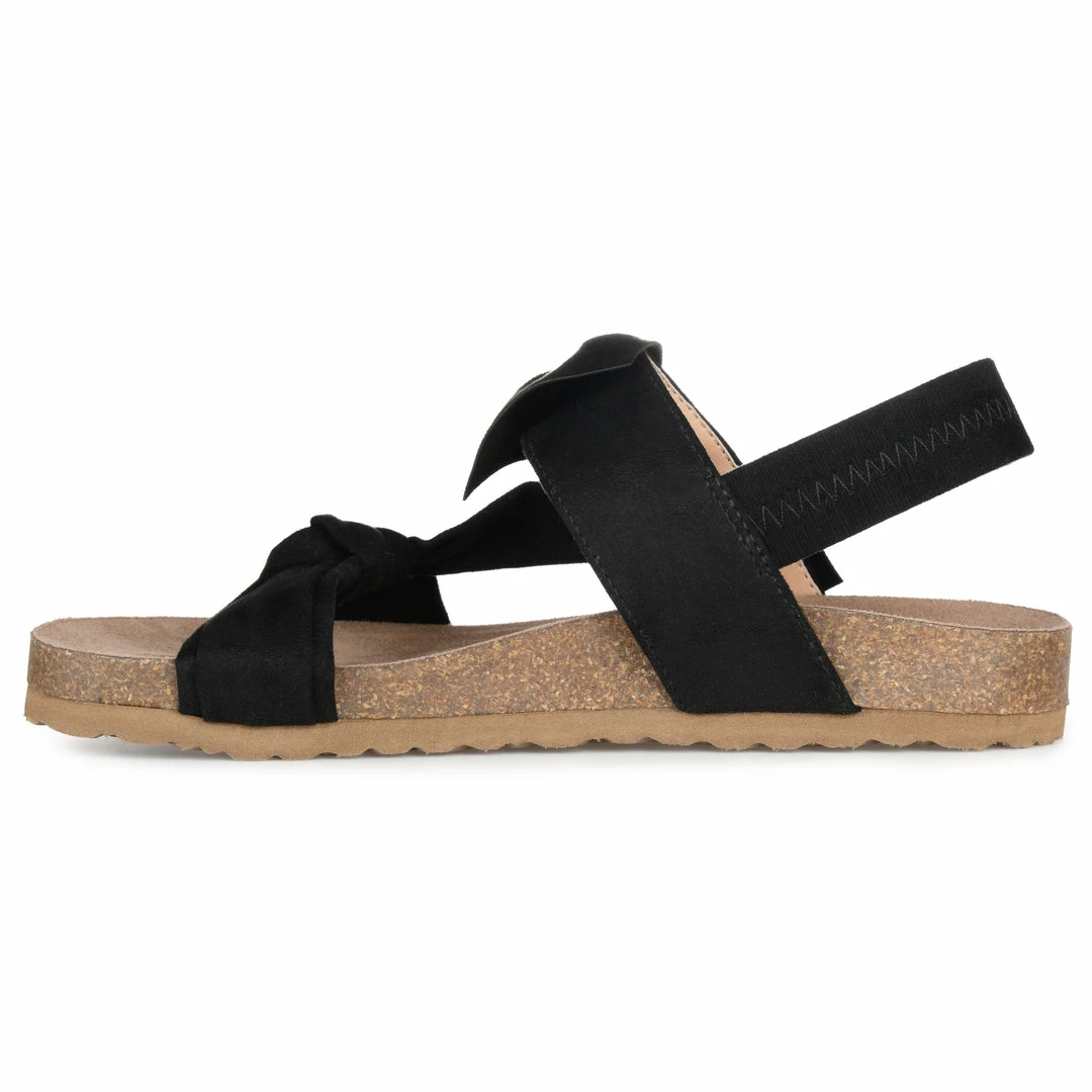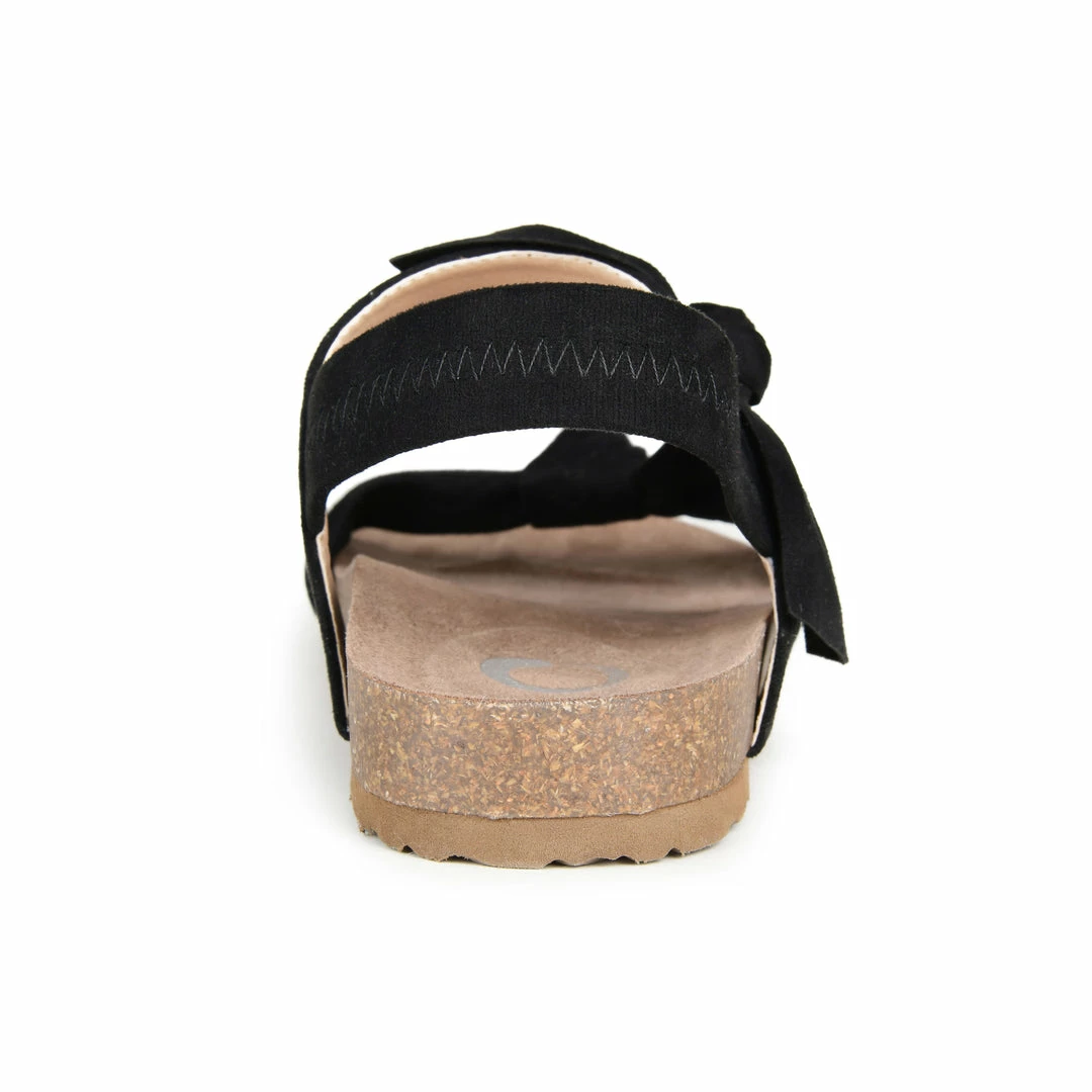 The Xanndra by Journee Collection is double the fun with two knotted bow details. This casual sandal is perfected with a padded footbed and soft fabric lining at the insole that keeps you comfy. Vegan leather uppers shape the look, and a slingback strap holds you in place. Heel Height – 1-inch Heel Type – Sole Platform Height – 1-inch Shoe Width – Medium Closure Type – Slip-on Strap Type – Multi -Strap Toe Style – Open Lining – Faux Leather Upper Material – Vegan Leather Outersole Material – Man-made Footbed – Padded