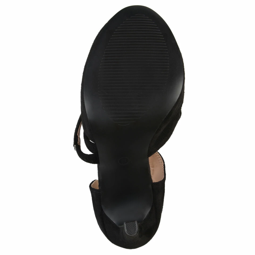 Step into chic style with crossover pumps by Journee Collection. These round toe pumps feature soft faux suede uppers with closed back heels and a stylish crossover strap on the vamps. Skinny stiletto high heels create a flattering silhouette Heel Height – 4 1/4-inch Heel Type – Stiletto Platform Height – 1/2-inch Shoe Width – Medium Closure Type – Slip-on Toe Style – Round Lining – Faux Leather Upper Material – Faux Suede Outersole Material – Man-made Footbed – Padded